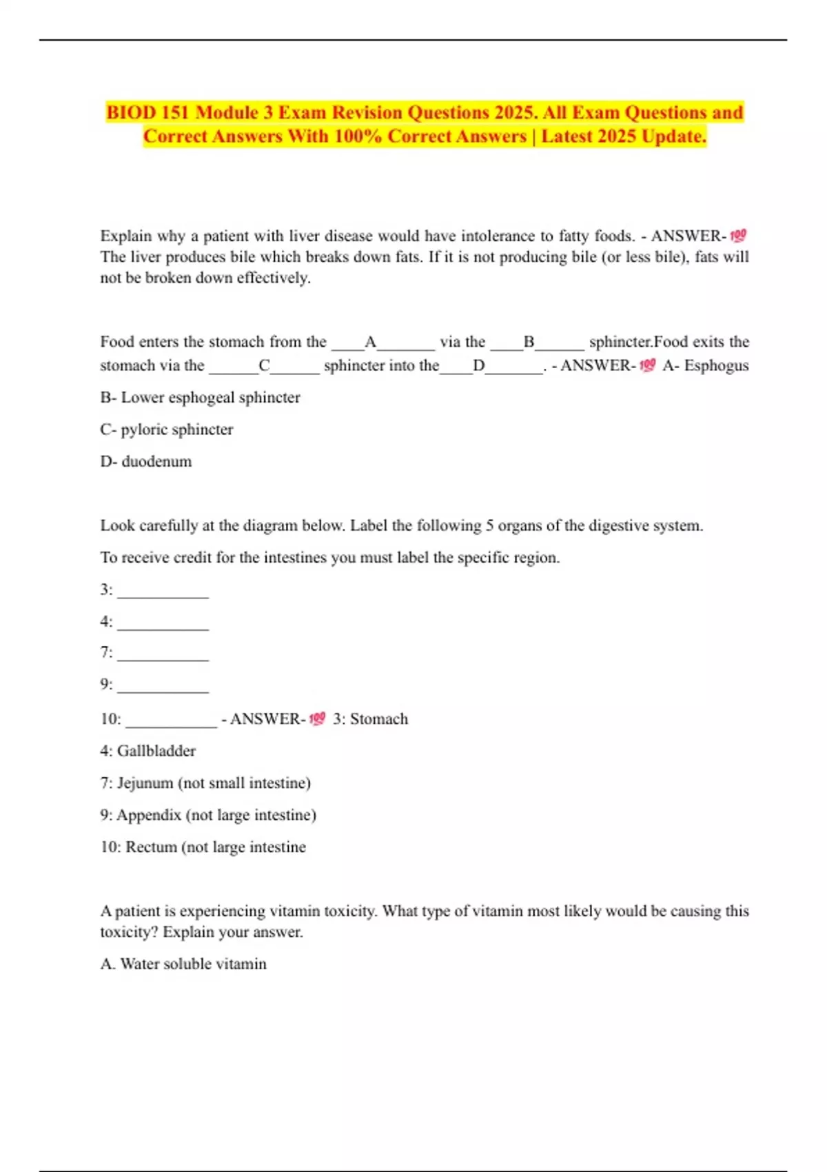 BIOD 151 Module 3 Exam Revision Questions 2025. All Exam Questions and