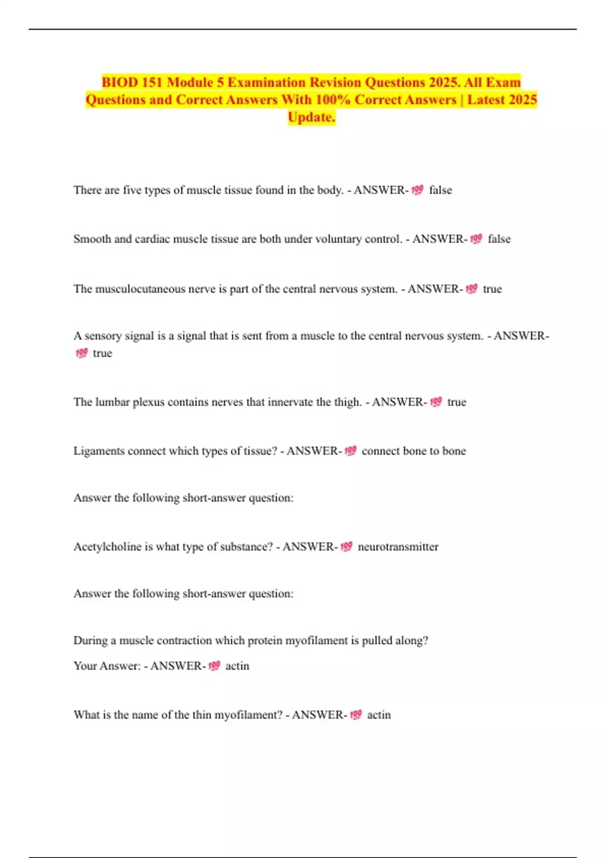BIOD 151 Module 5 Examination Revision Questions 2025. All Exam
