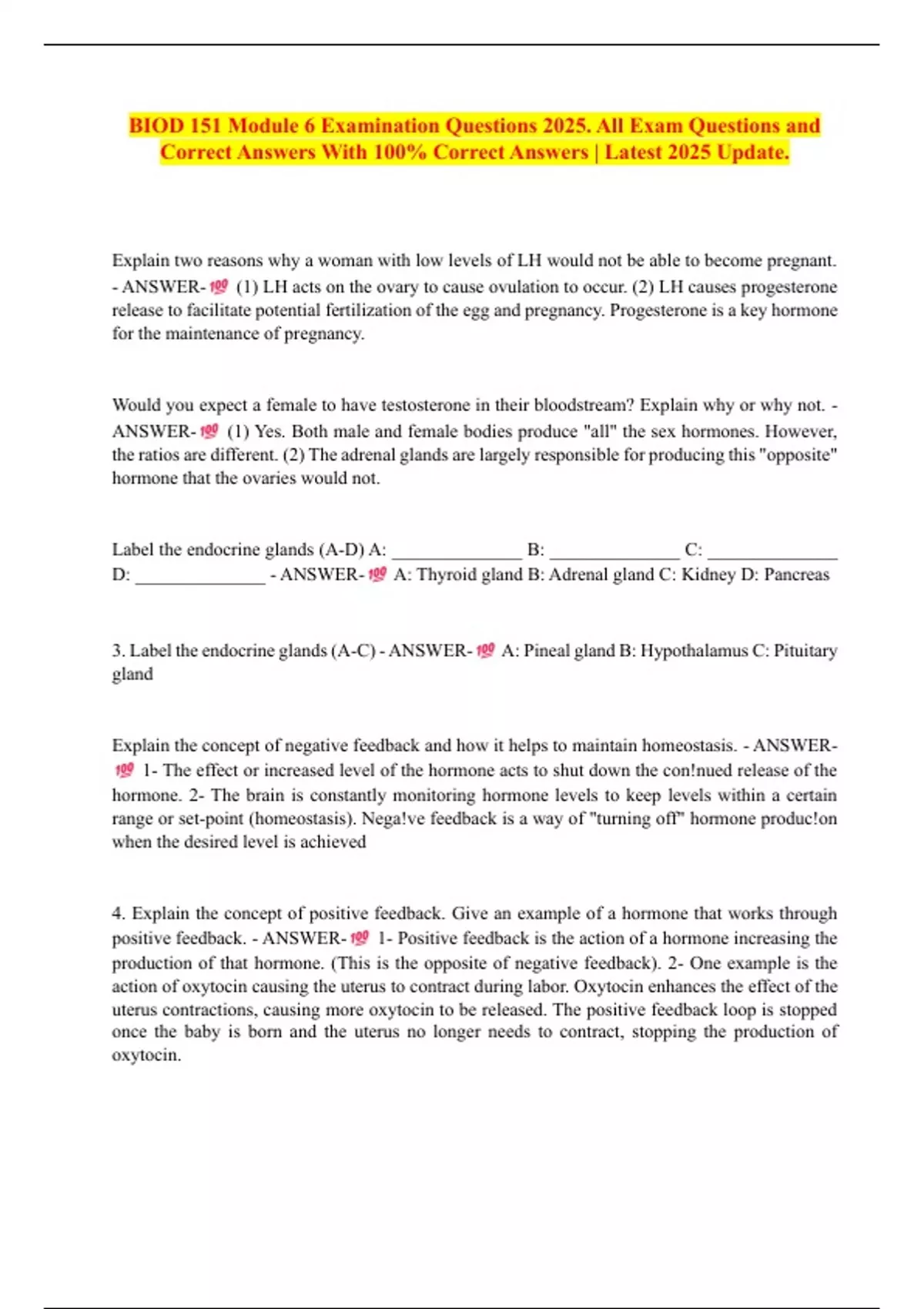 BIOD 151 Module 6 Examination Questions 2025. All Exam Questions and
