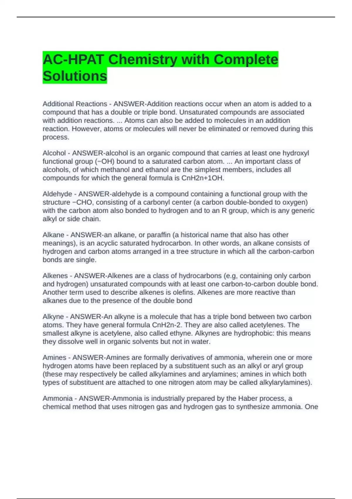 Alkenes - ANSWER-Alkenes are a class of hydrocarbons (e.g, containing only carbon