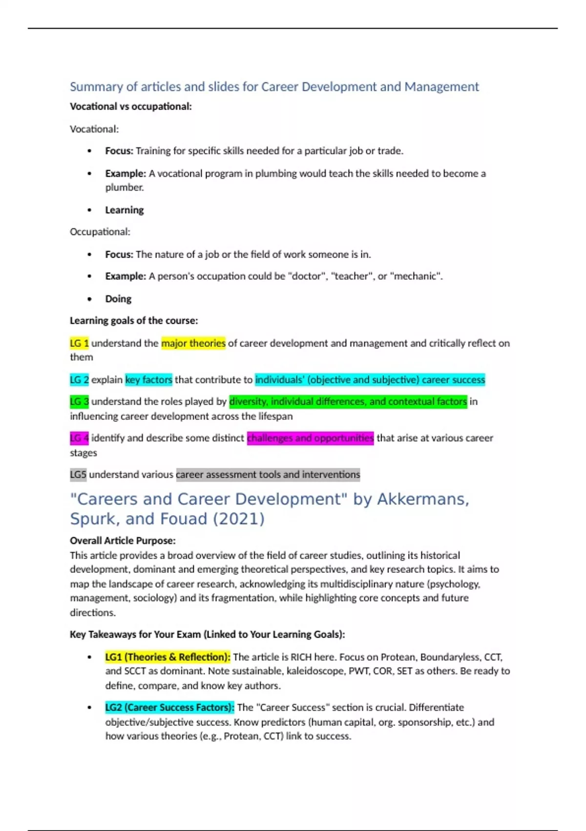 LG2 (Career Success Factors): The "Career Success" section is crucial. Differentiate