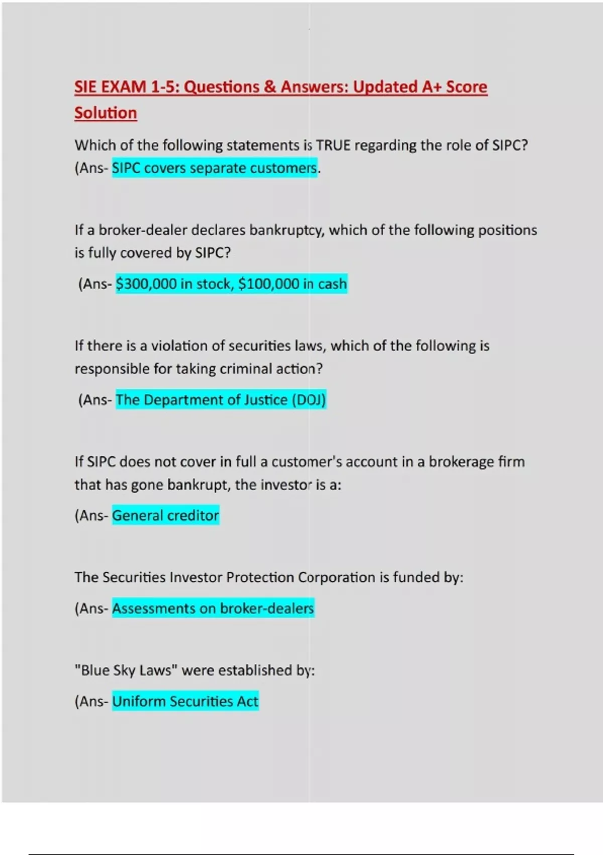 SIE EXAM 1-5: SIE Exam 1: SIE Exam 2: SIE Exam 3: SIE Exam 4: SIE Exam 5:Questions & Answers: Updated A+ Score Solution