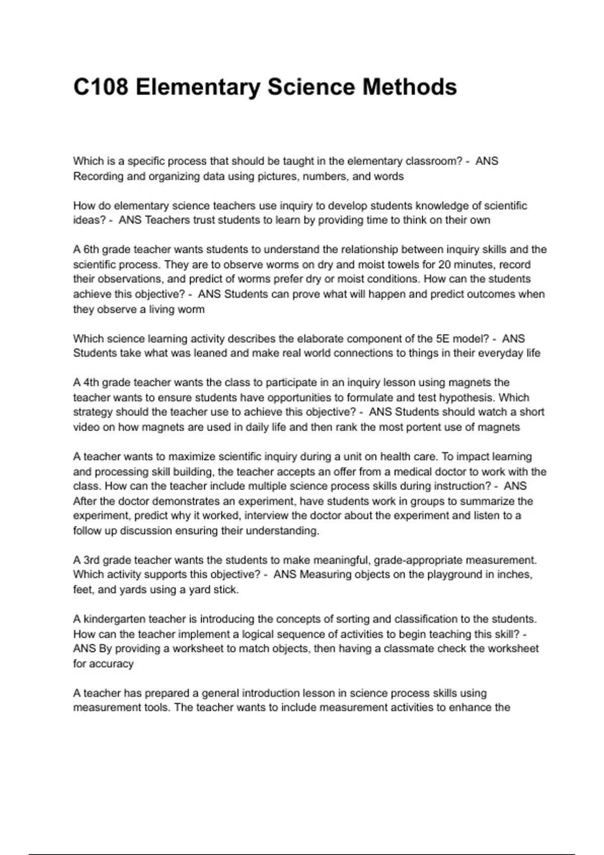 C108 Elementary Science Methods