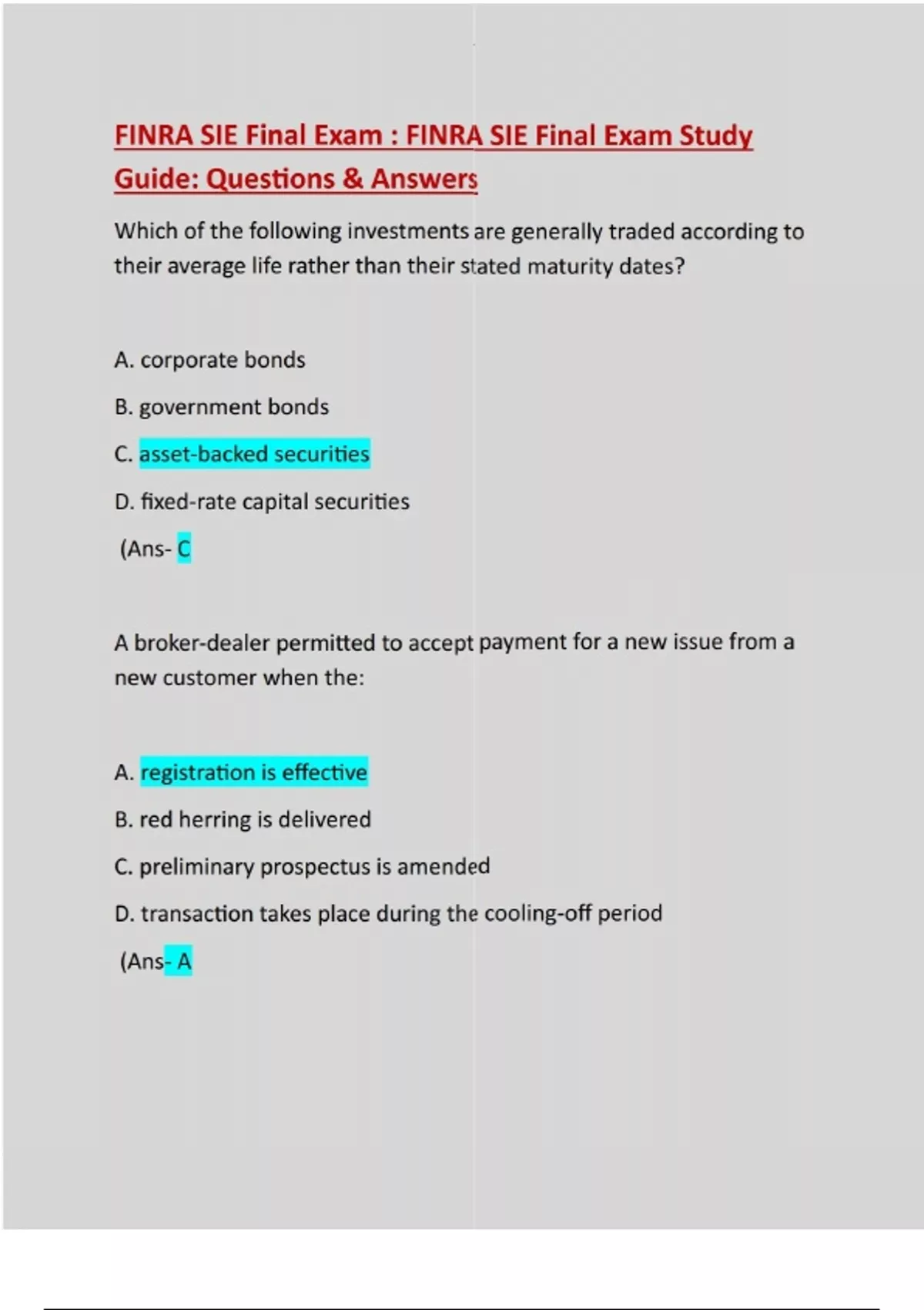 FINRA SIE Final Exam : FINRA SIE Final Exam Study Guide: Questions & Answers: Updated Solution
