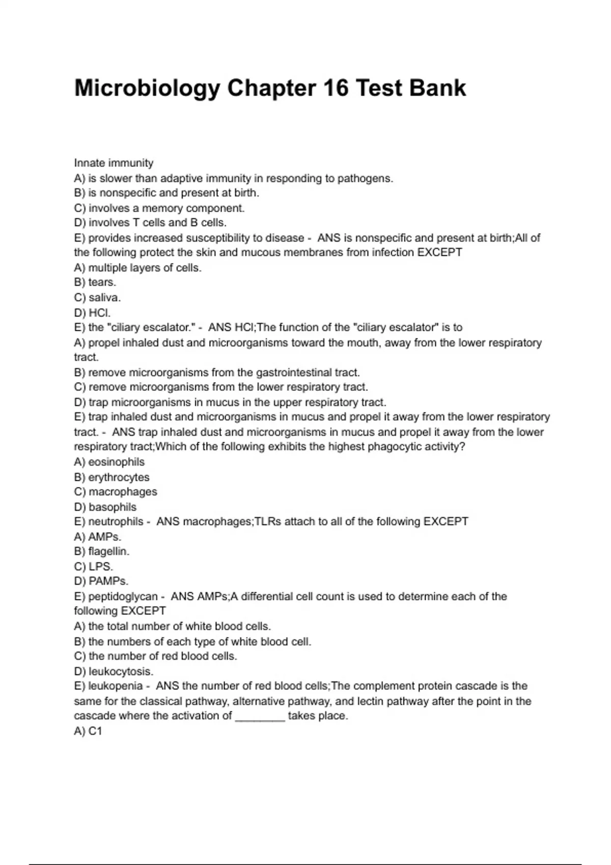 Test Bank- Microbiology Chapter 16 Questions and Answers Newest Update (A+ GRADED)