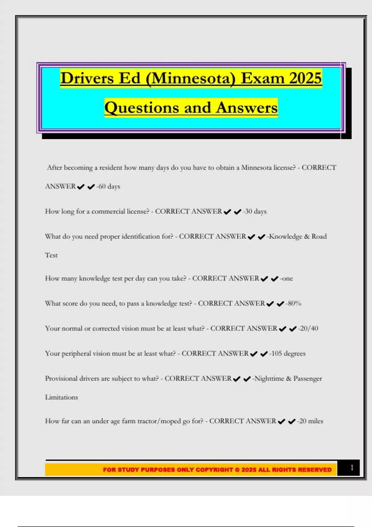 FOR STUDY PURPOSES ONLY COPYRIGHT © 2025 ALL RIGHTS RESERVED 1