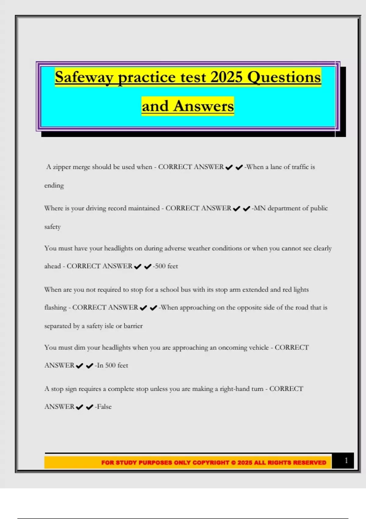 FOR STUDY PURPOSES ONLY COPYRIGHT © 2025 ALL RIGHTS RESERVED 1