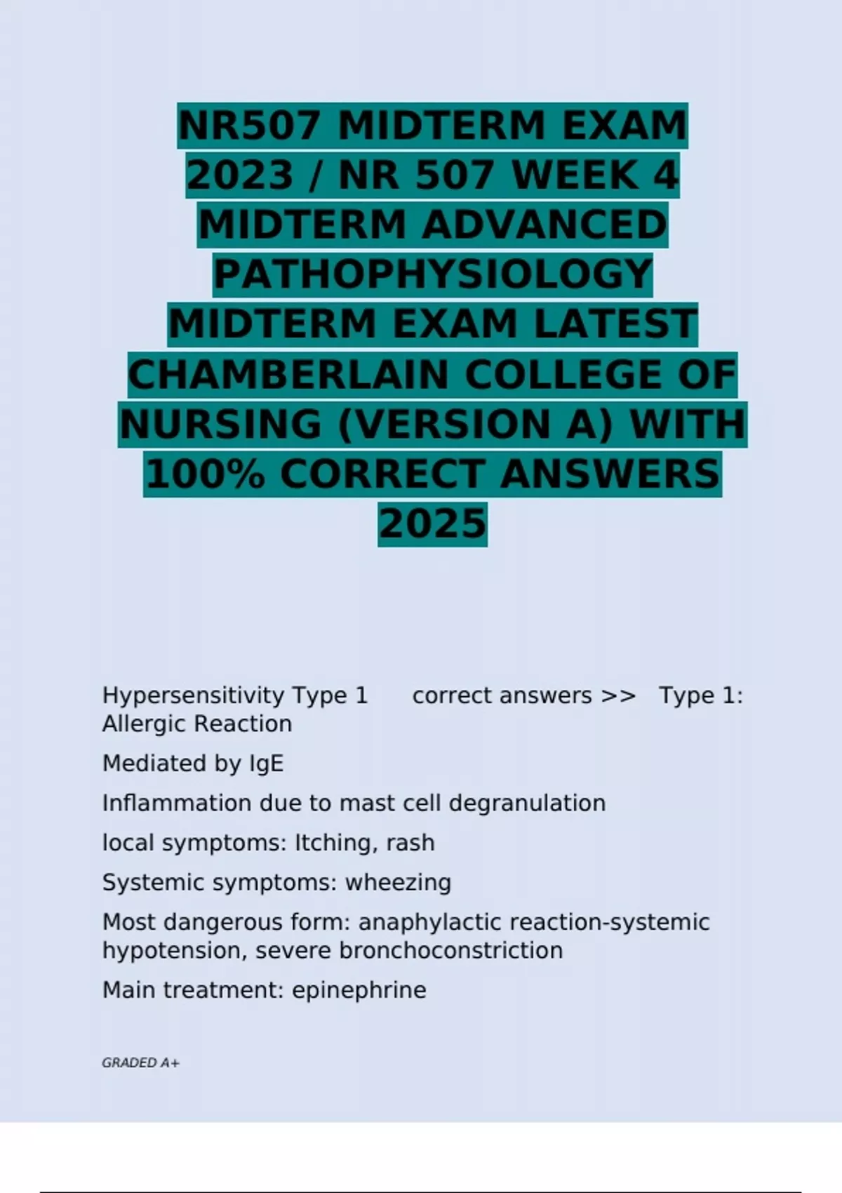 Hypersensitivity Type 1 correct answers >> Type 1: