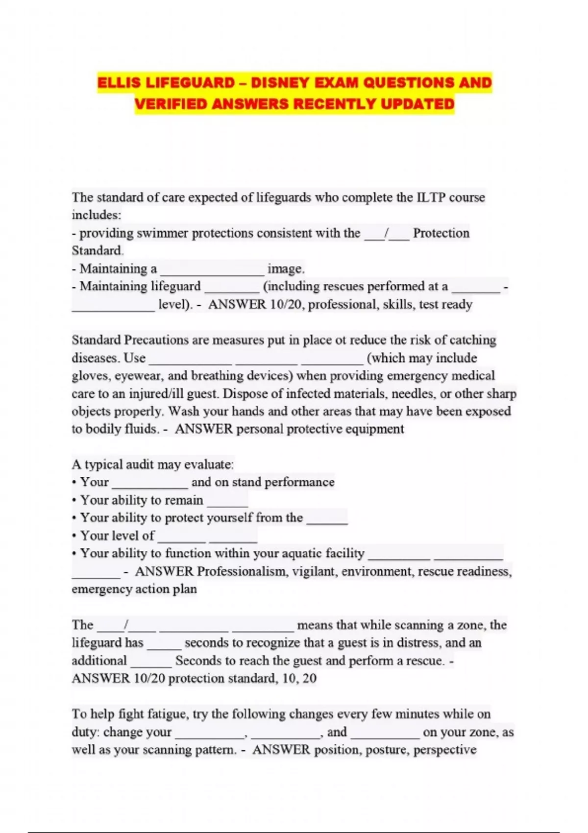 ELLIS LIFEGUARD – DISNEY EXAM QUESTIONS AND VERIFIED ANSWERS RECENTLY UPDATED....