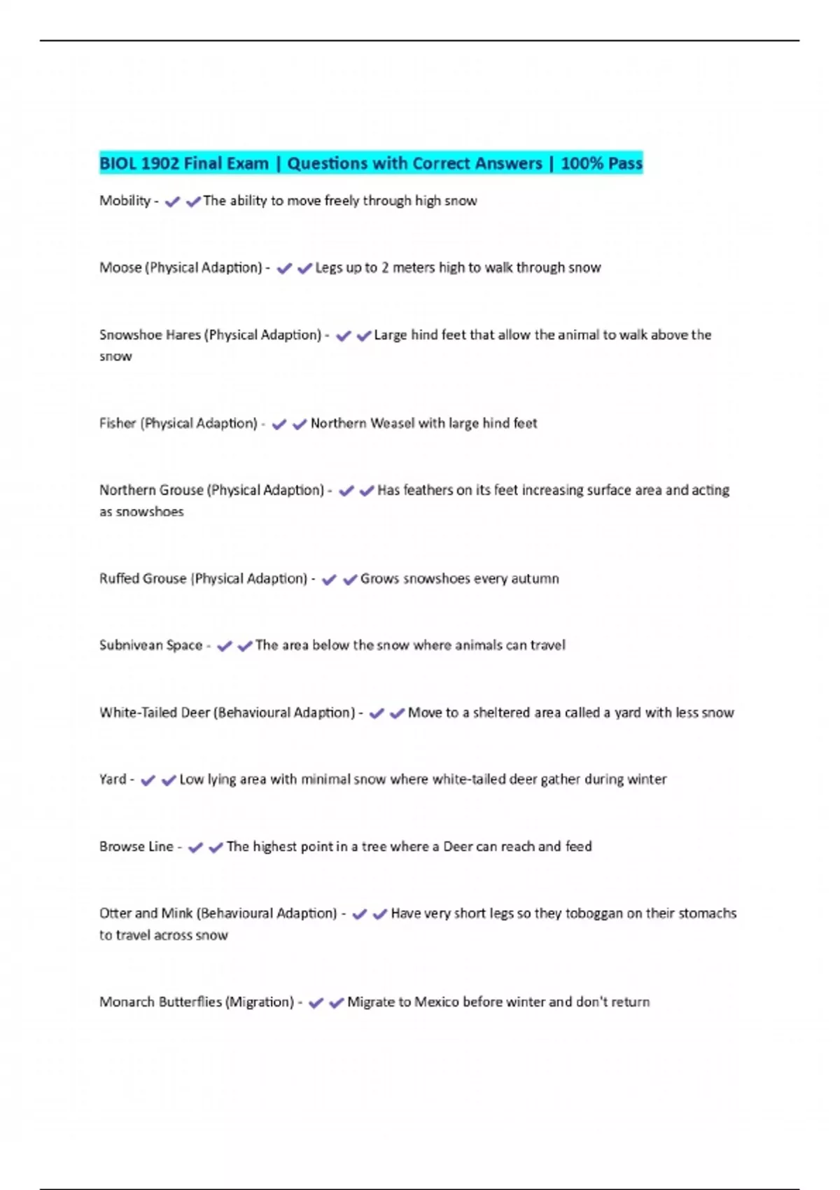 BIOL 1902 Final Exam | Questions with Correct Answers | 100% Pass