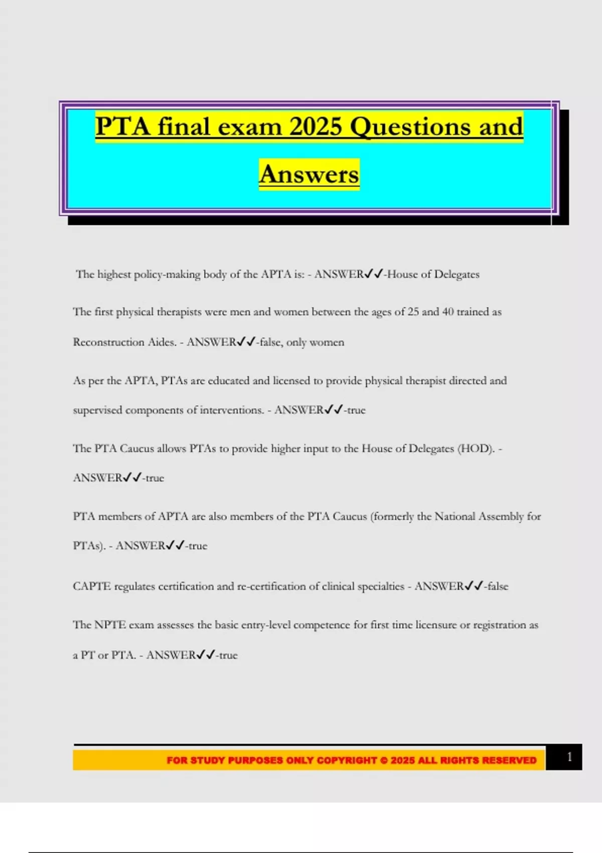 FOR STUDY PURPOSES ONLY COPYRIGHT © 2025 ALL RIGHTS RESERVED 1