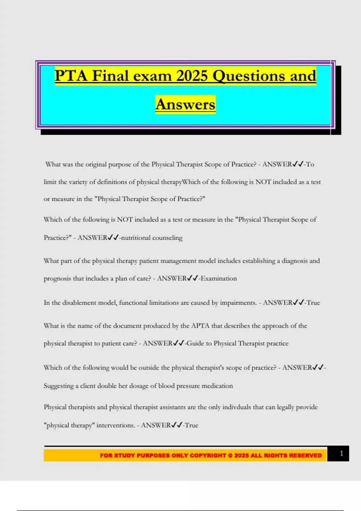FOR STUDY PURPOSES ONLY COPYRIGHT © 2025 ALL RIGHTS RESERVED 1