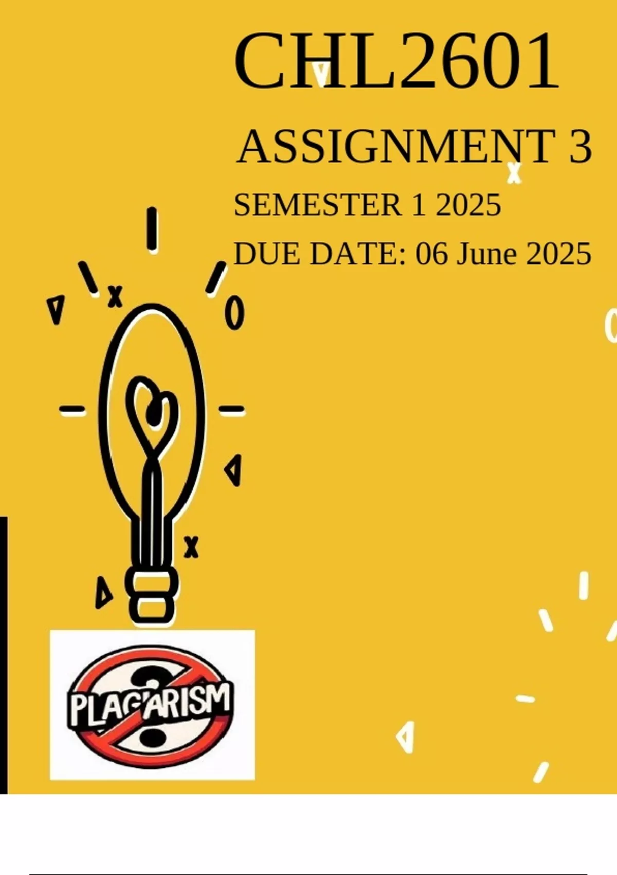 CHL2601 Assignment 3 2025 100% solved answers.Stop starting from scratch.Download your copy today and get a head start.