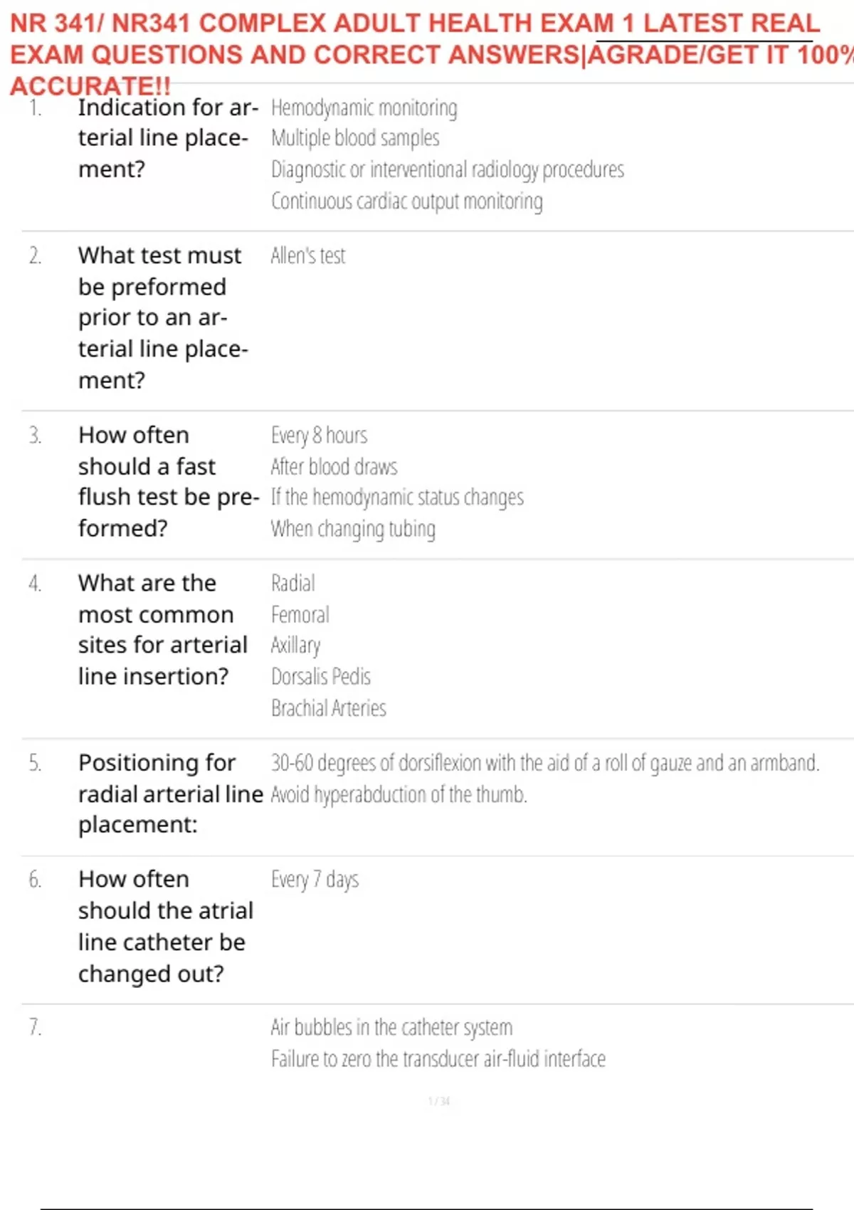 NR 341/ NR341 COMPLEX ADULT HEALTH EXAM 1 LATEST REAL