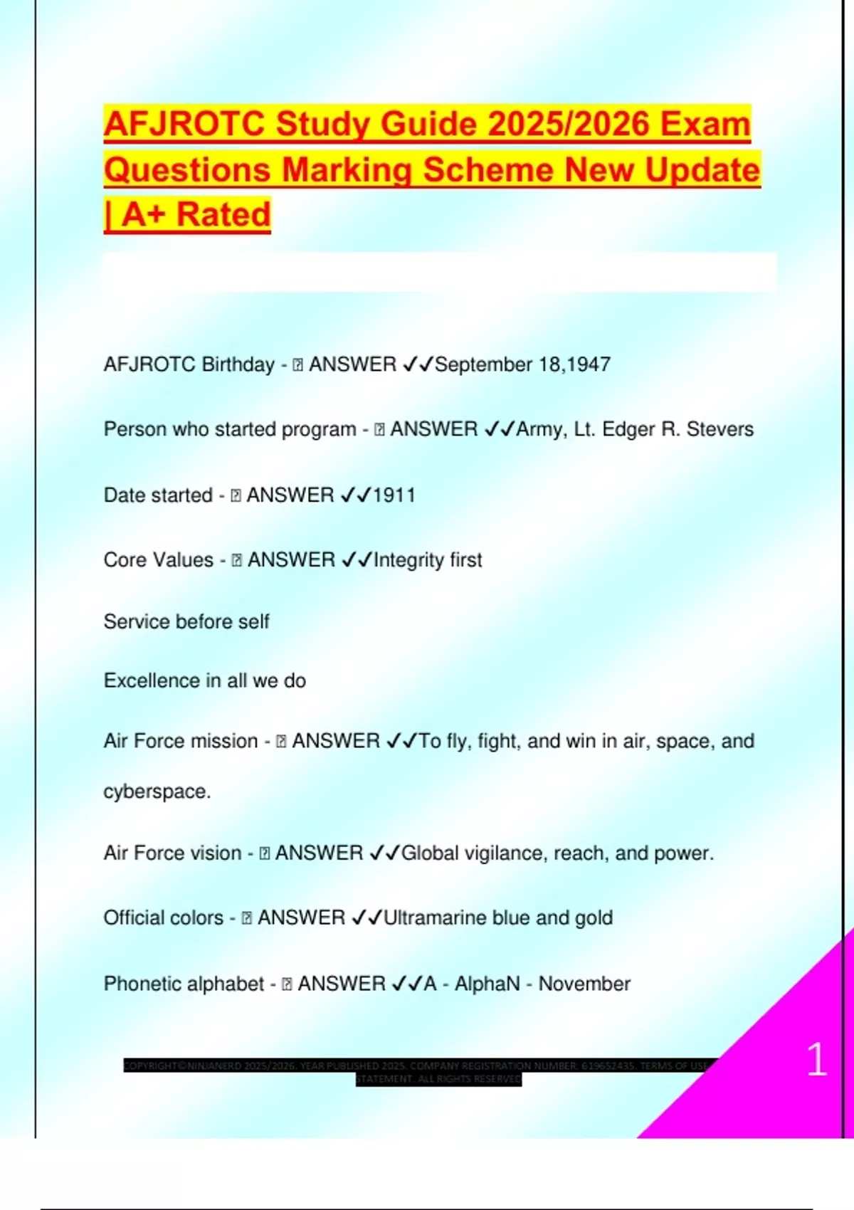 AFJROTC Study Guide 2025/2026 Exam