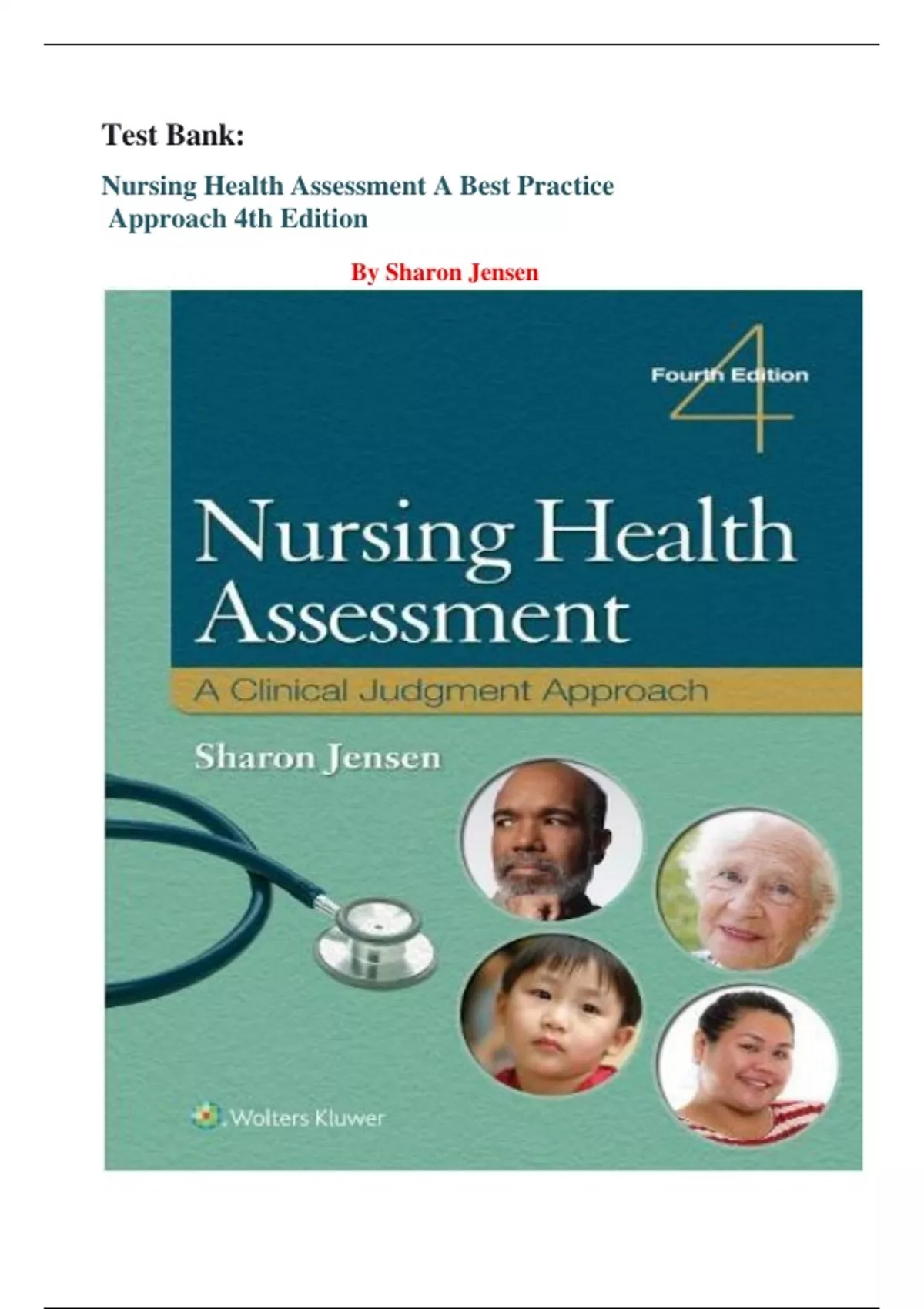 Test Bank for Nursing Health Assessment a Best Practice Approach 4th Edition by Sharon Jensen. All Chapters 1-30
