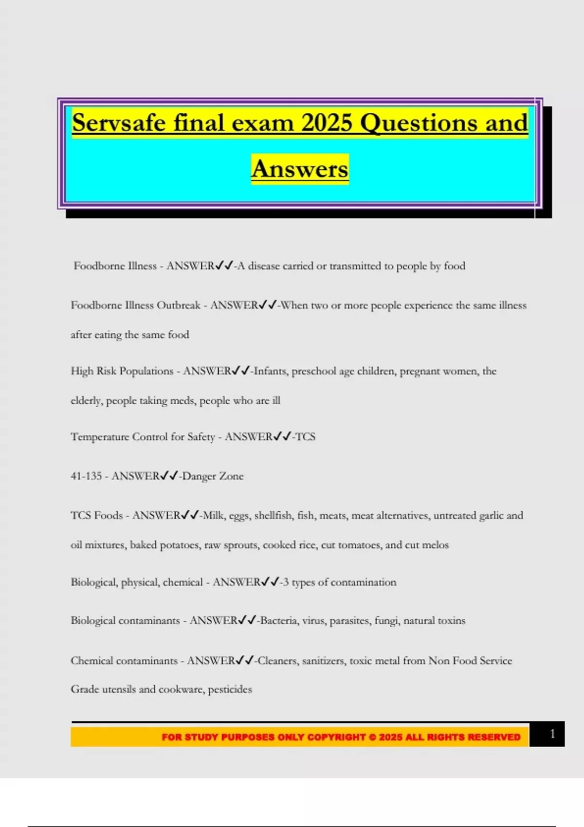 FOR STUDY PURPOSES ONLY COPYRIGHT © 2025 ALL RIGHTS RESERVED 1