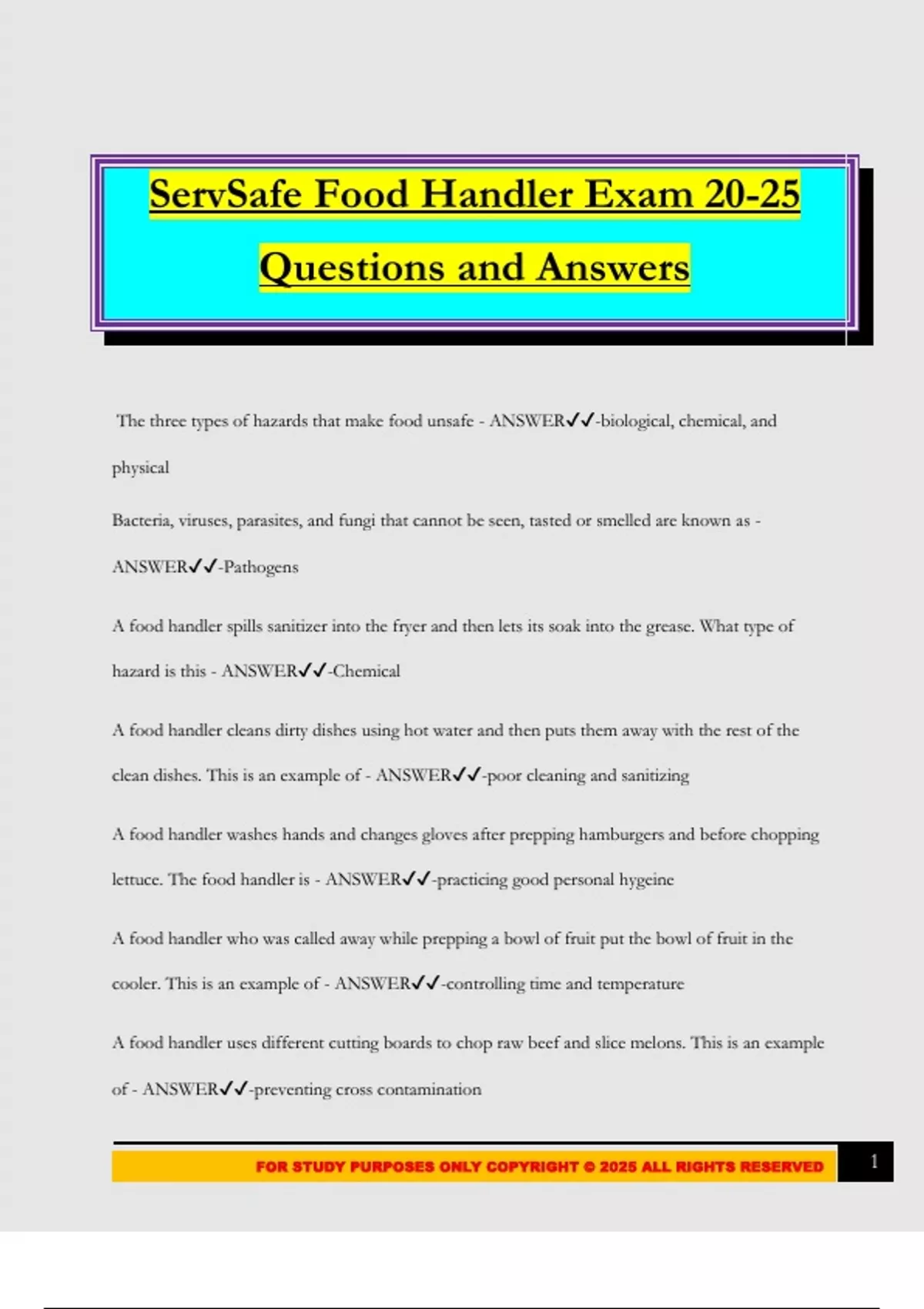 FOR STUDY PURPOSES ONLY COPYRIGHT © 2025 ALL RIGHTS RESERVED 1