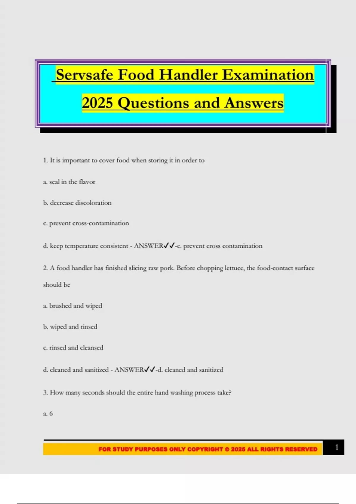 FOR STUDY PURPOSES ONLY COPYRIGHT © 2025 ALL RIGHTS RESERVED 1