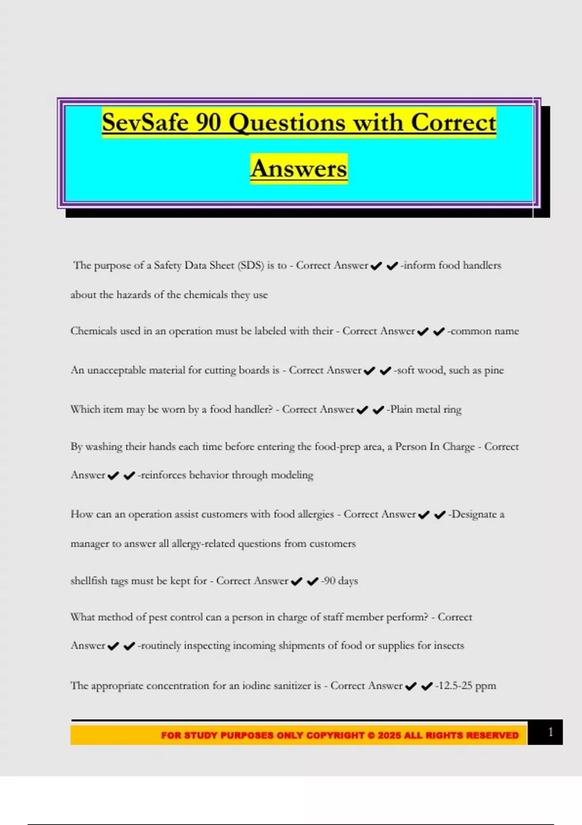 The purpose of a Safety Data Sheet (SDS) is to - Correct Answer✔️✔️-inform food handlers