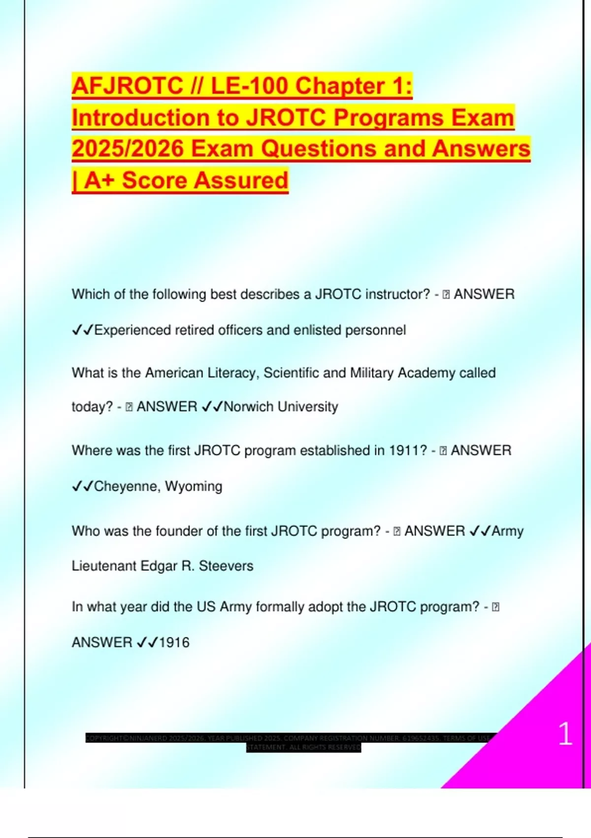 Who was the founder of the first JROTC program? - 🧠 ANSWER ✔✔Army
