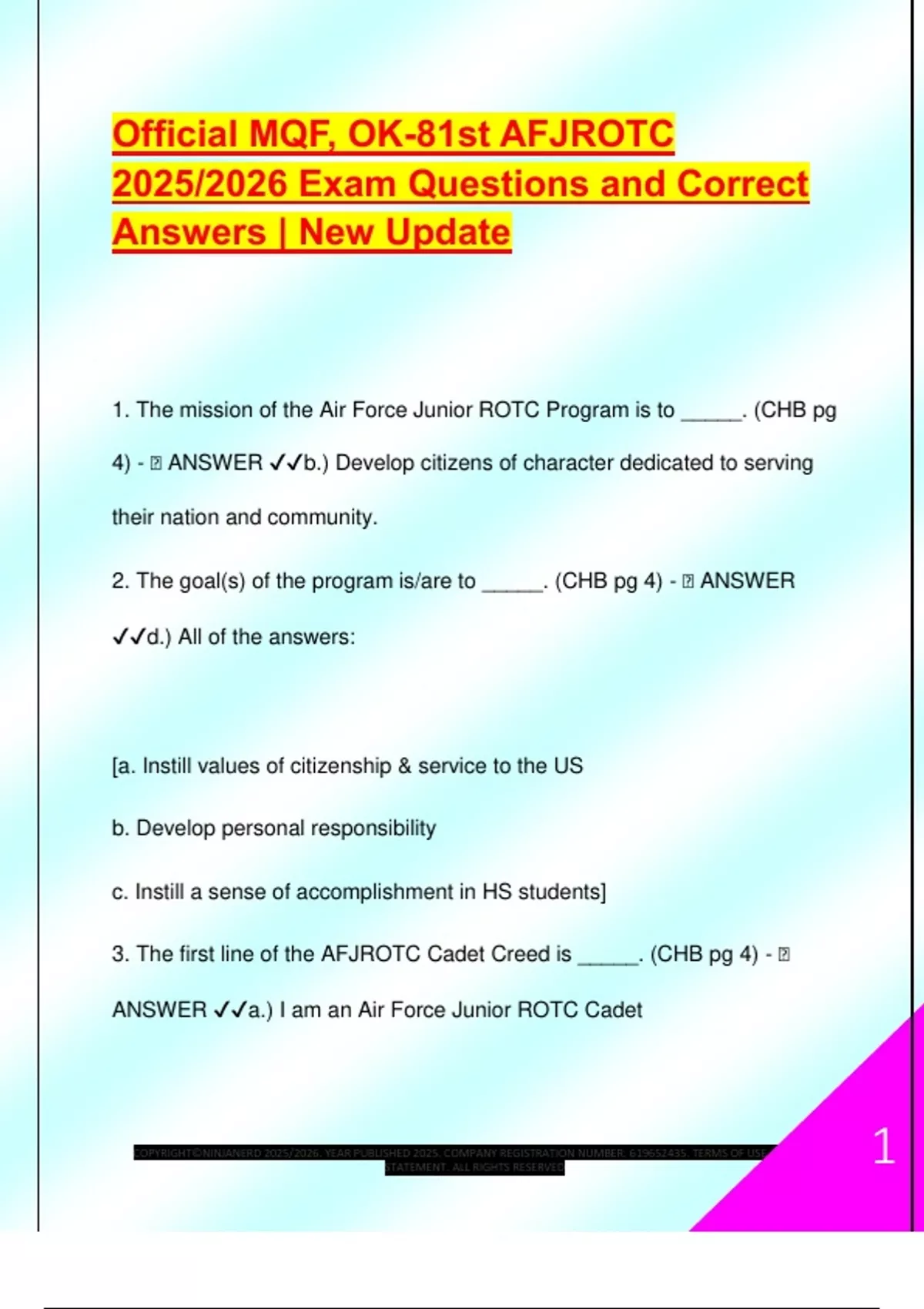 1. The mission of the Air Force Junior ROTC Program is to _____. (CHB pg