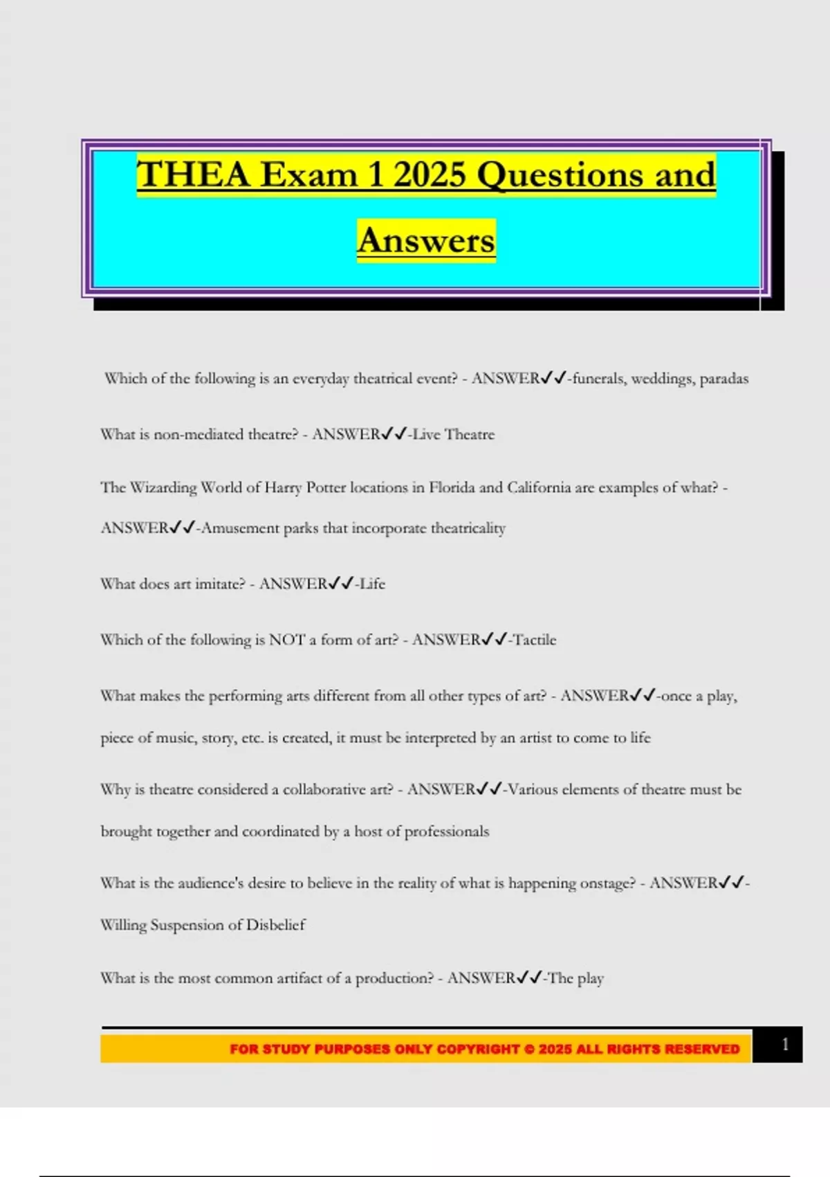 FOR STUDY PURPOSES ONLY COPYRIGHT © 2025 ALL RIGHTS RESERVED 1