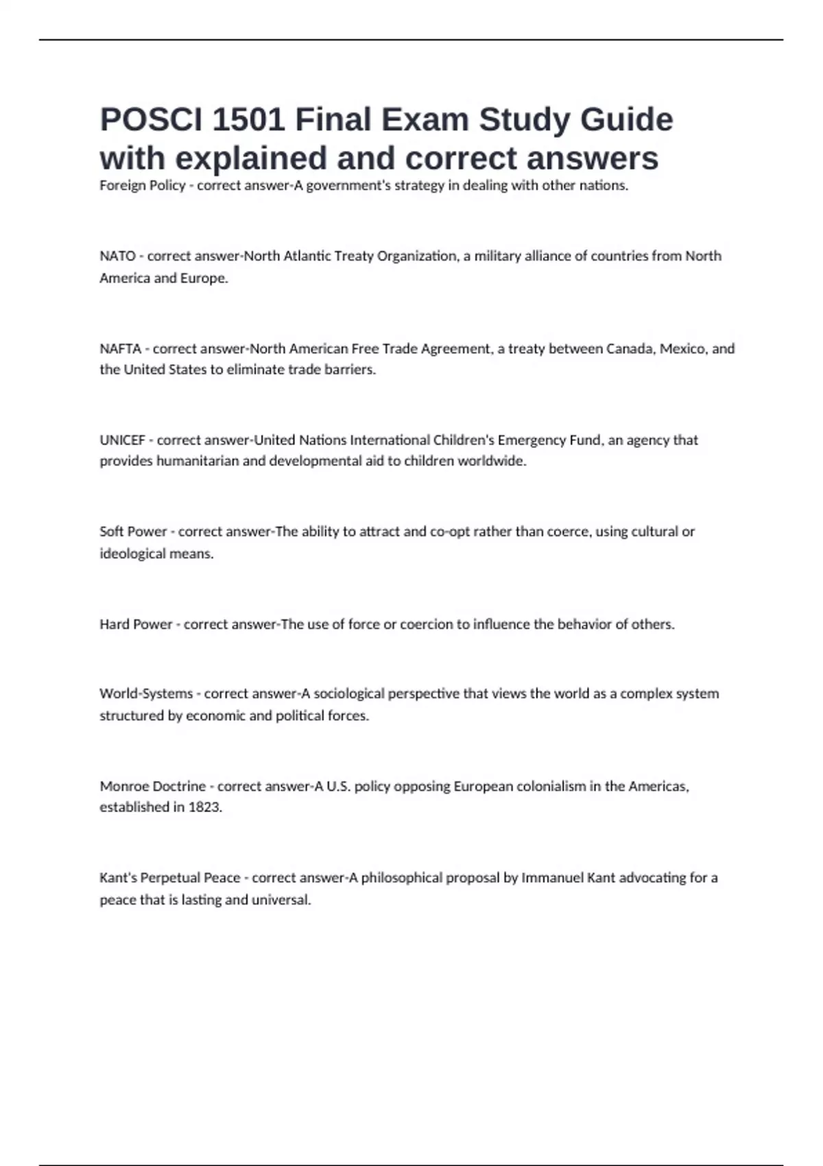 NAFTA - correct answer-North American Free Trade Agreement, a treaty between Canada, Mexico, and