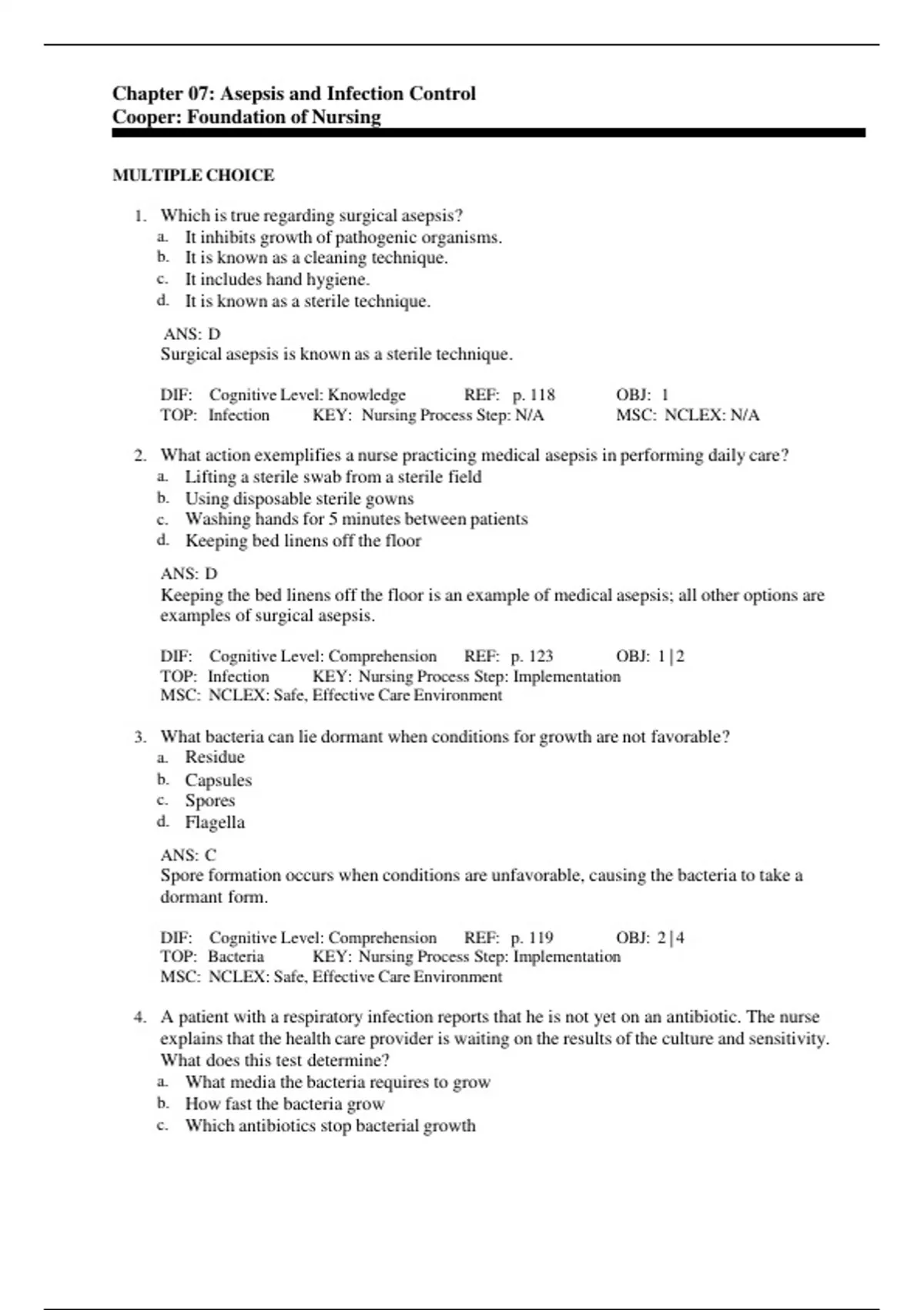 TOP: Infection KEY: Nursing Process Step: N/A MSC: NCLEX: N/A