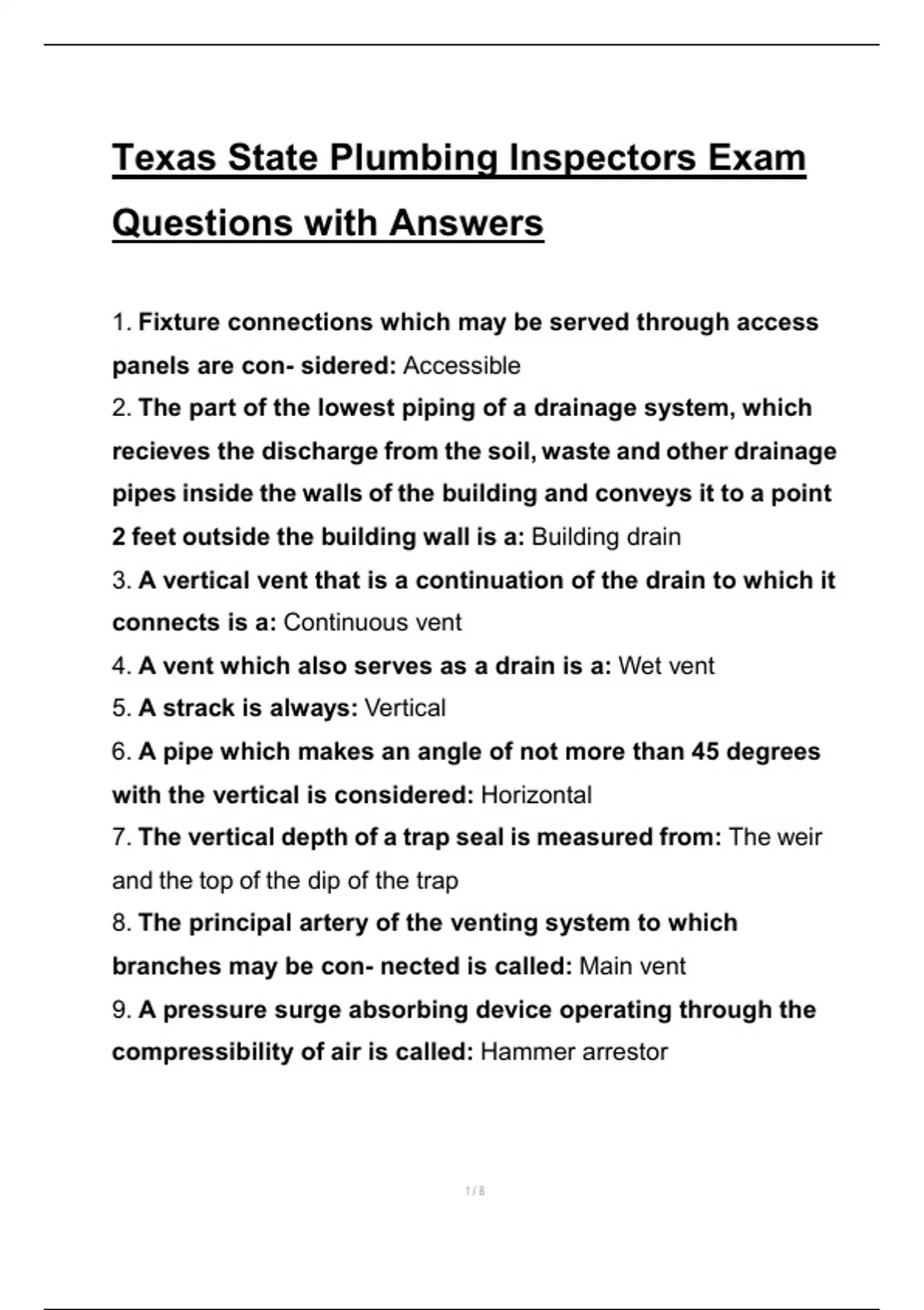 25. On a drain line, 1/4 in to the foot is known as: Fall. grade or