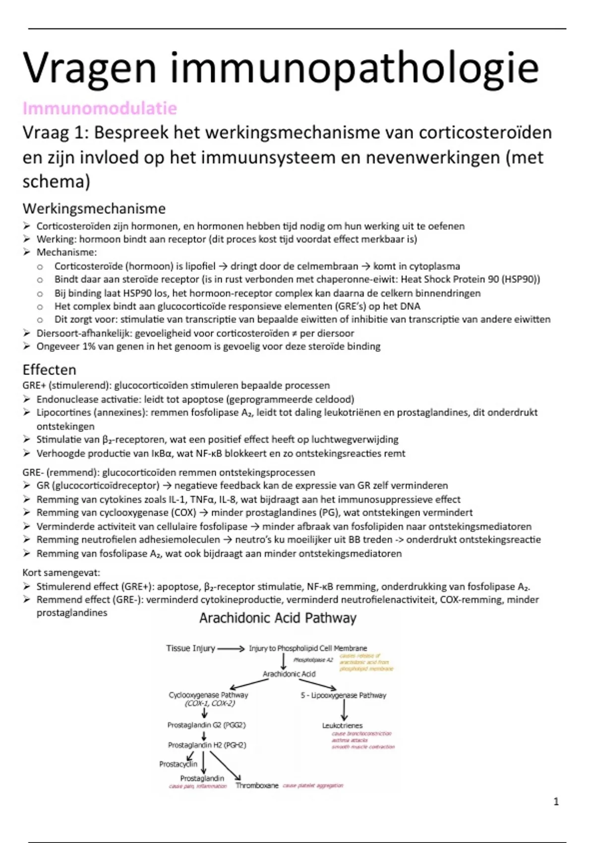 Vraag 1: Bespreek het werkingsmechanisme van corticosteroïden