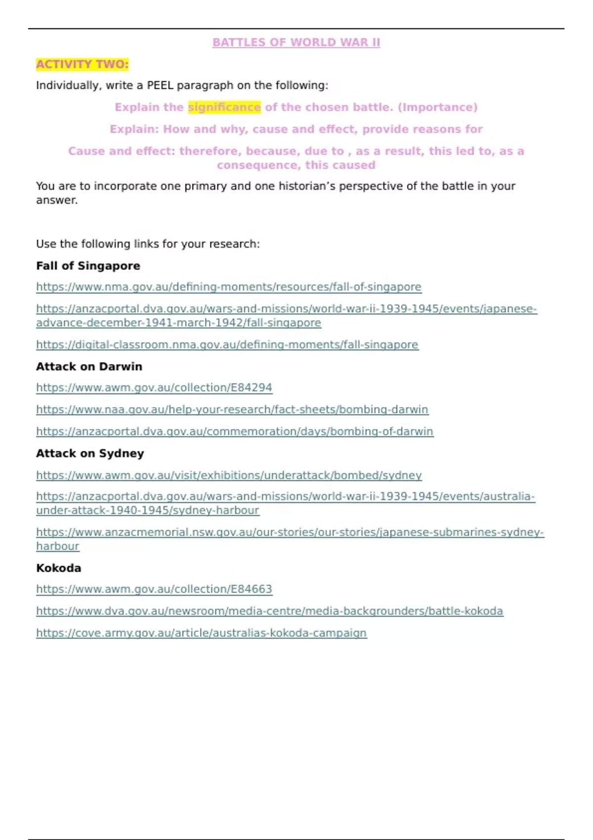 You are to incorporate one primary and one historian’s perspective of the battle in your