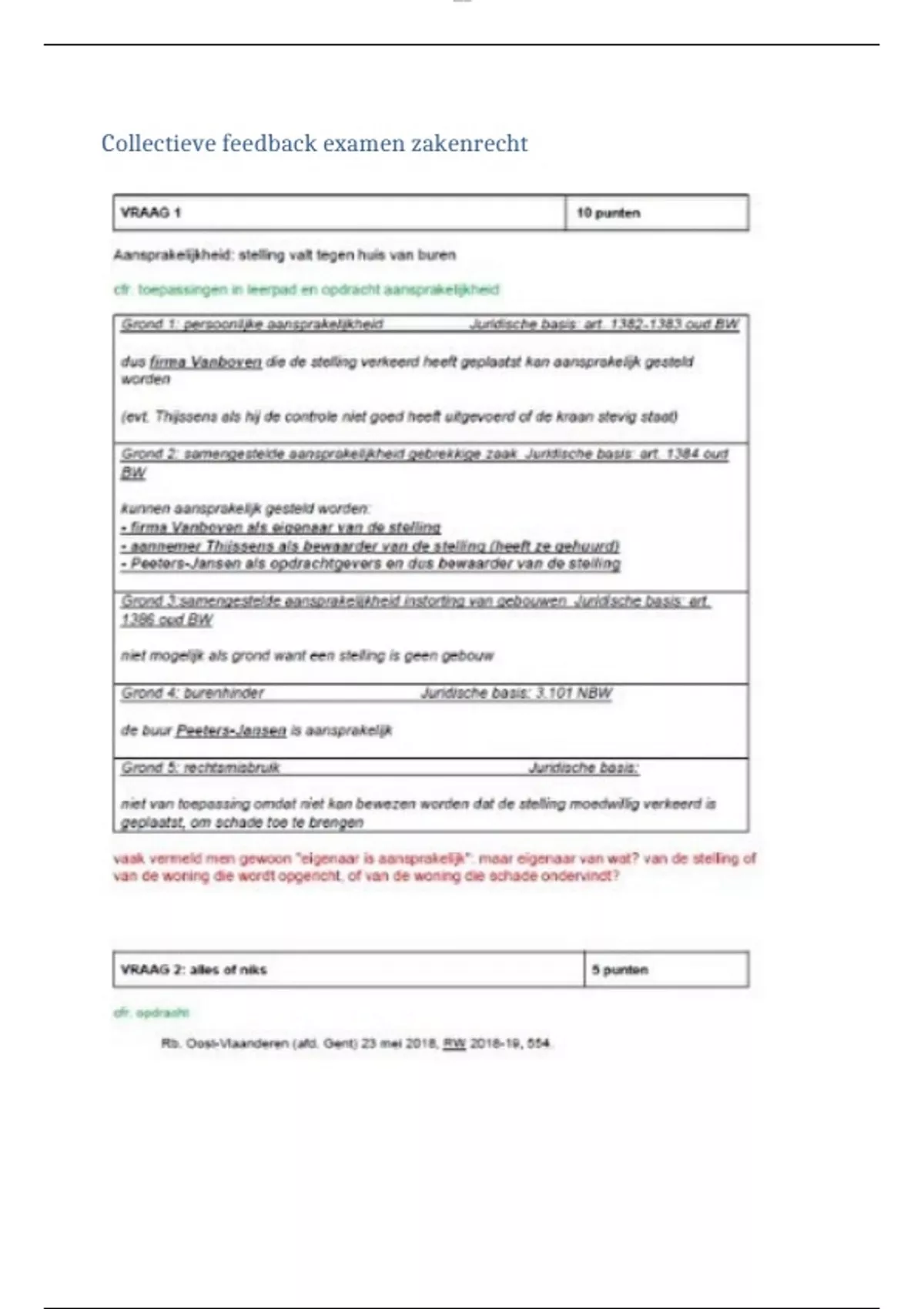 Dit document bevat de feedback die ik kreeg op mijn examen van Zakenrecht, het volledig examen + antwoorden staat hierin. Ik behaalde 14/20 voor zakenrecht aan de hand van deze vragen!