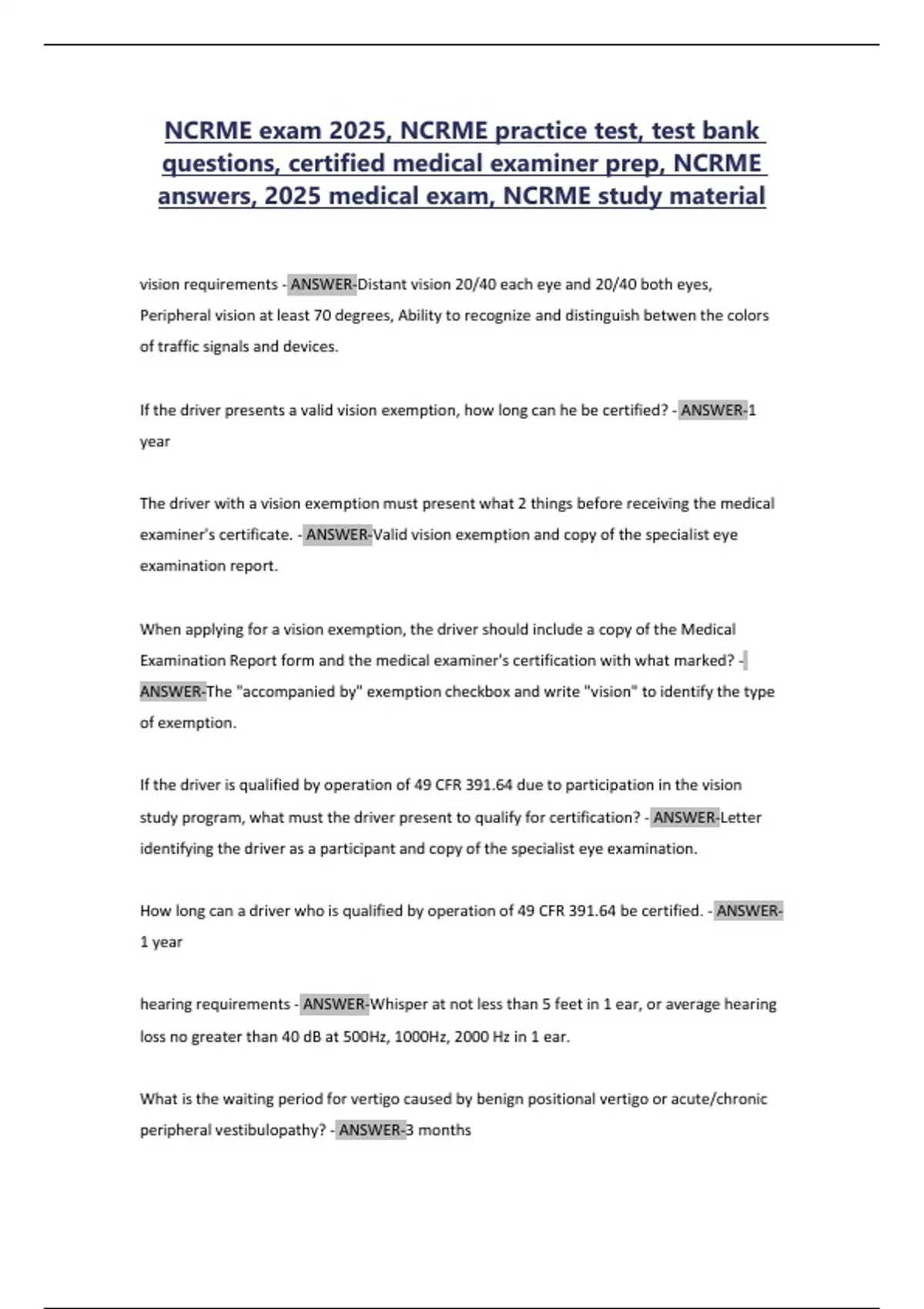 answers, 2025 medical exam, NCRME study material