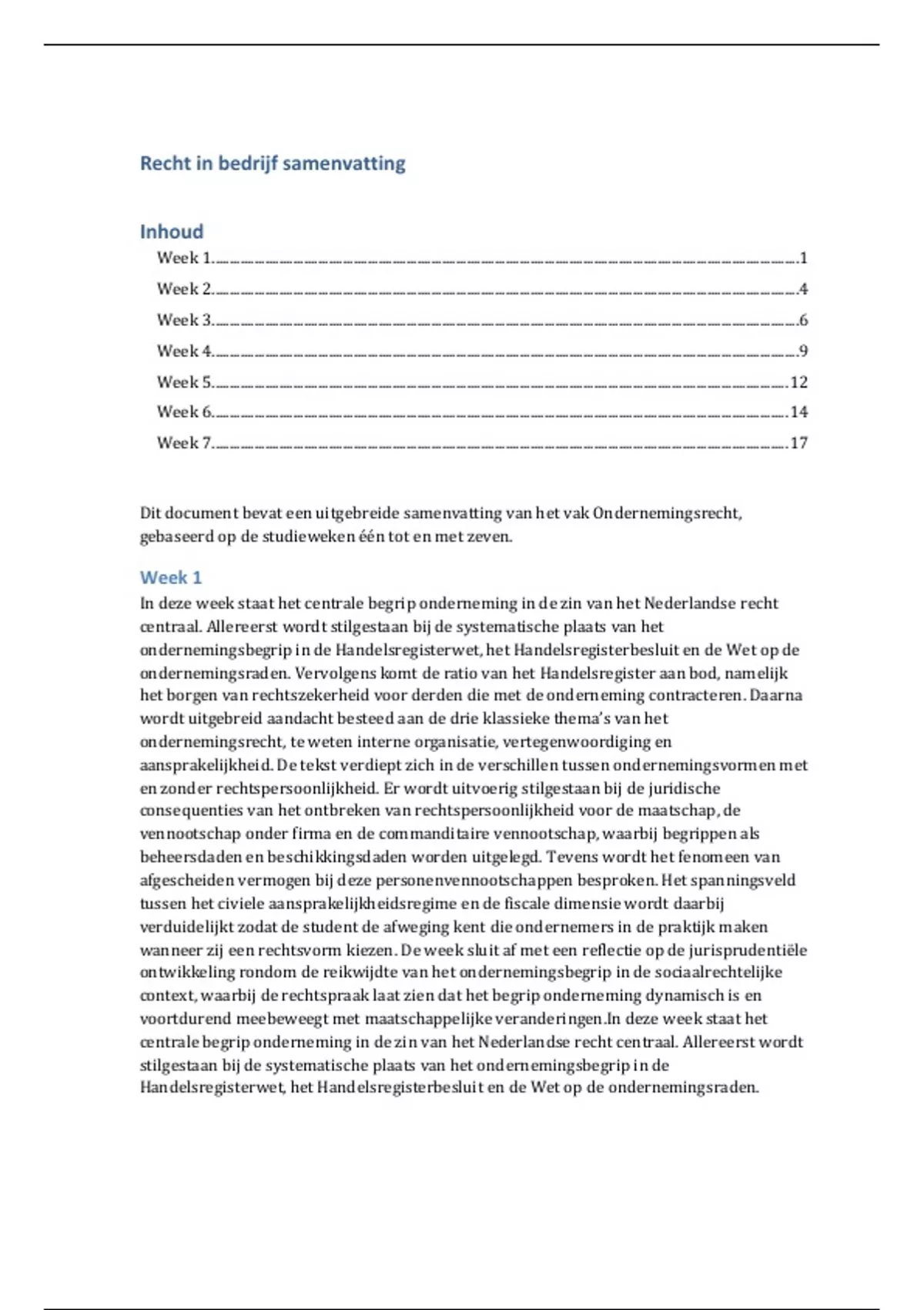 week staat het centrale begrip onderneming in de zin van het Nederlandse recht centraal.
