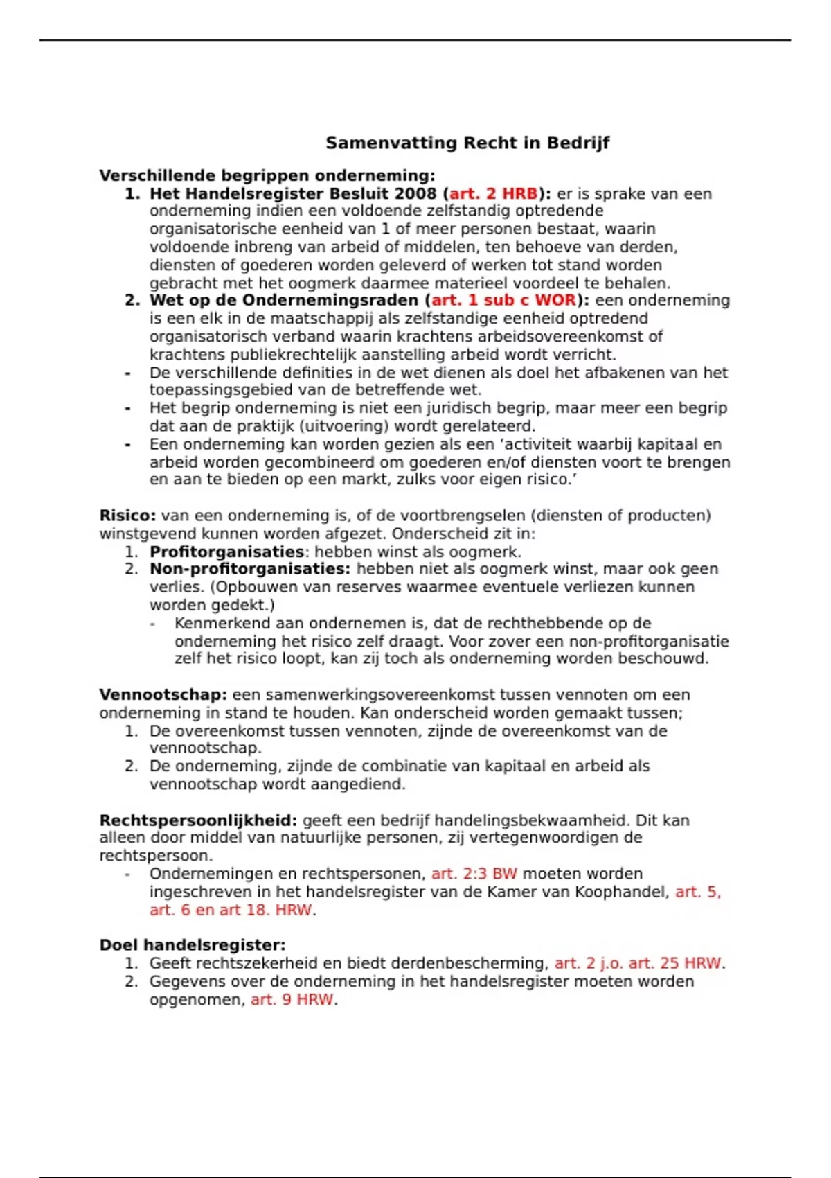 Rechtspersoonlijkheid: geeft een bedrijf handelingsbekwaamheid. Dit kan