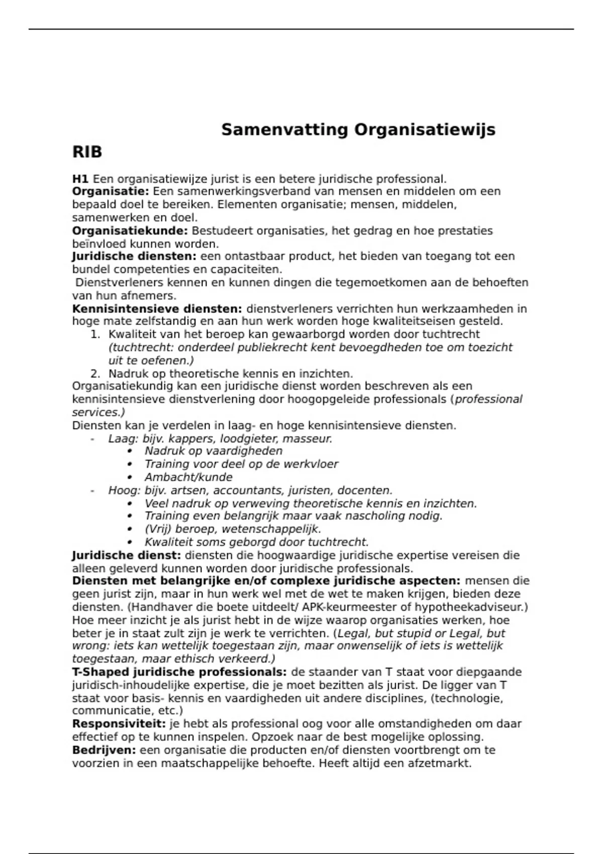 Samenvatting Organisatiewijs