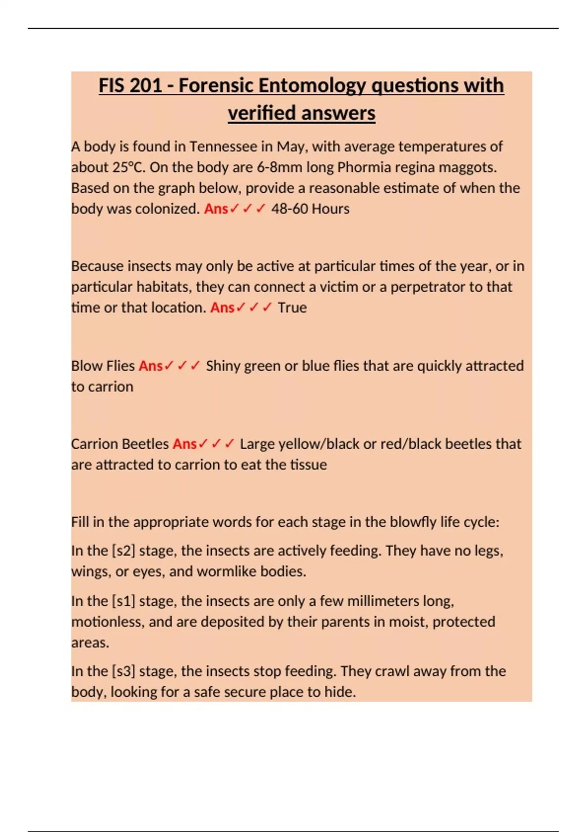 about 25°C. On the body are 6-8mm long Phormia regina maggots.
