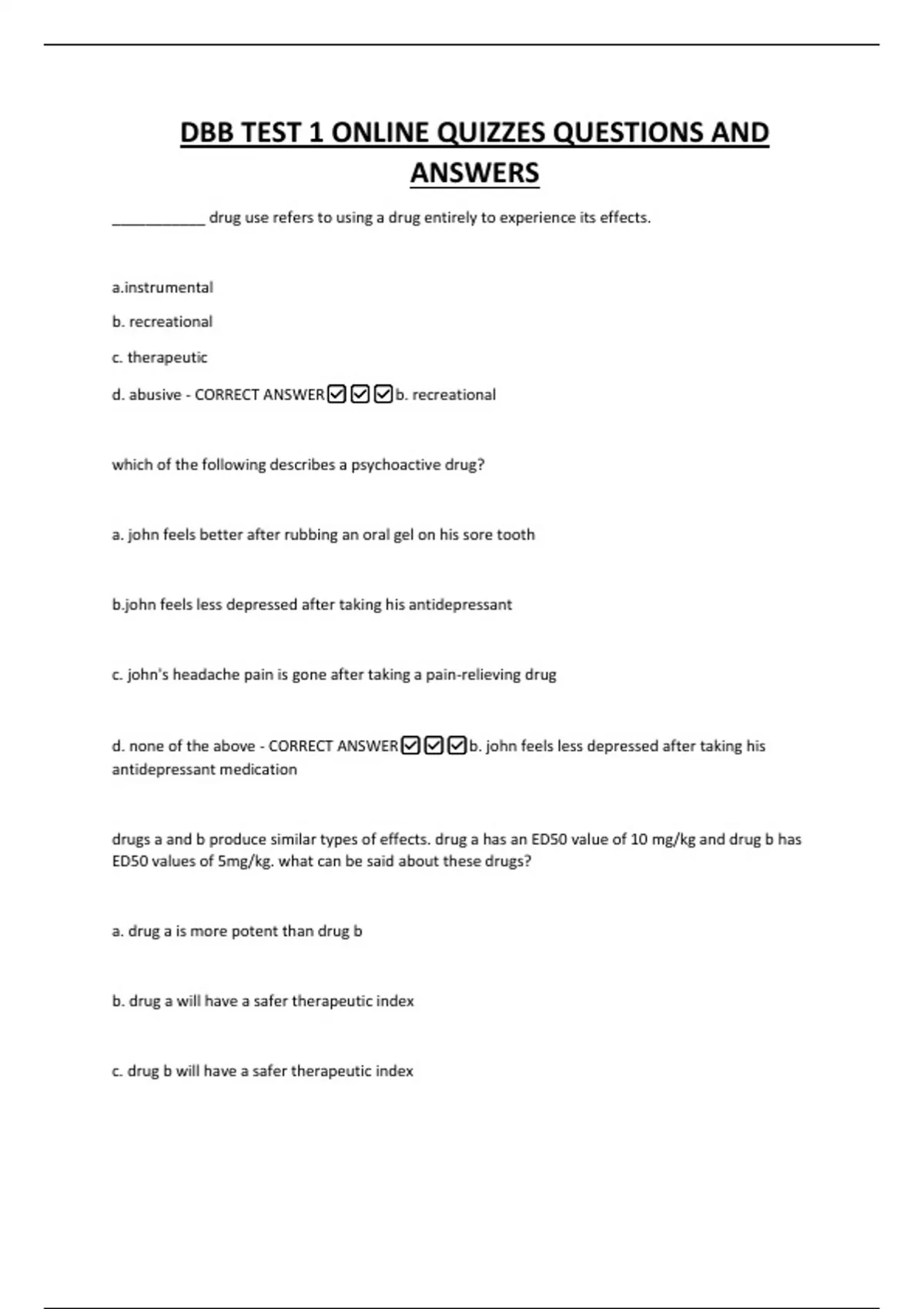 d. abusive - CORRECT ANSWER✅✅✅b. recreational