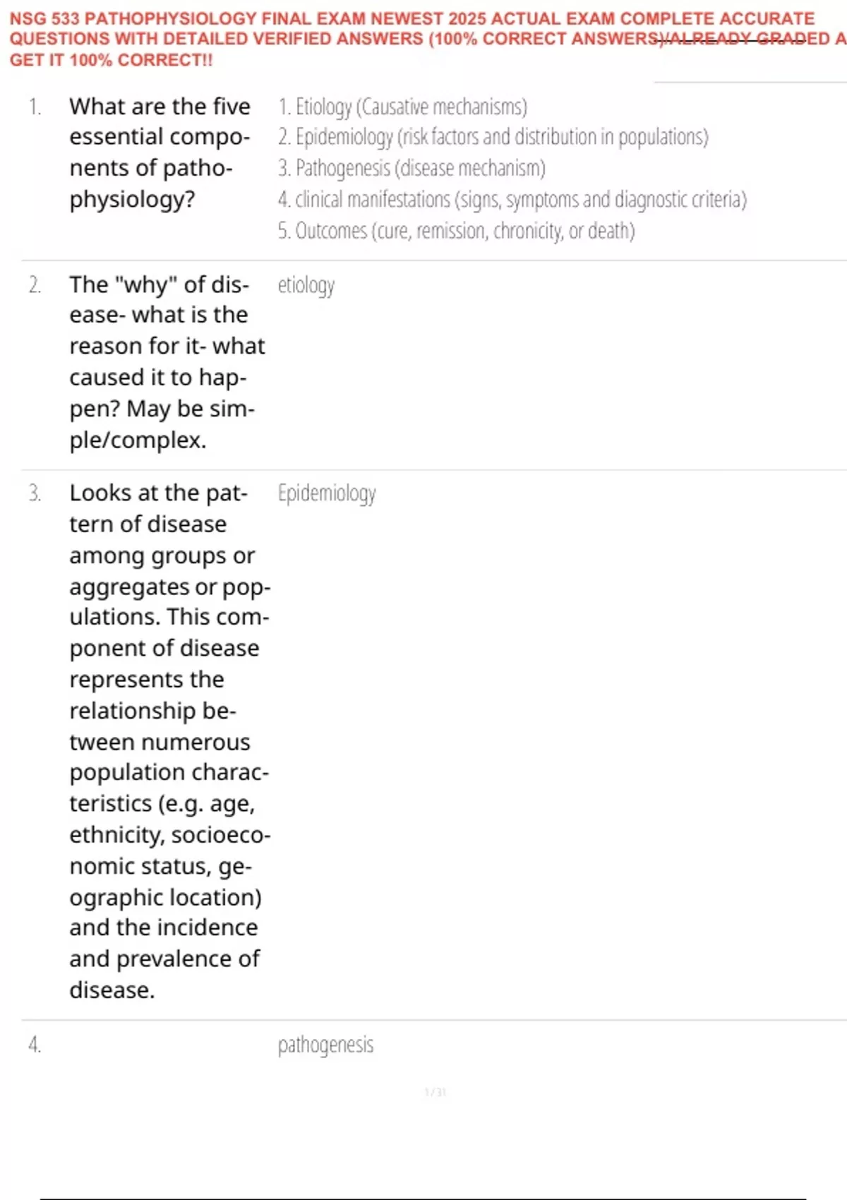 NSG 533 PATHOPHYSIOLOGY FINAL EXAM NEWEST 2025 ACTUAL EXAM COMPLETE ACCURATE