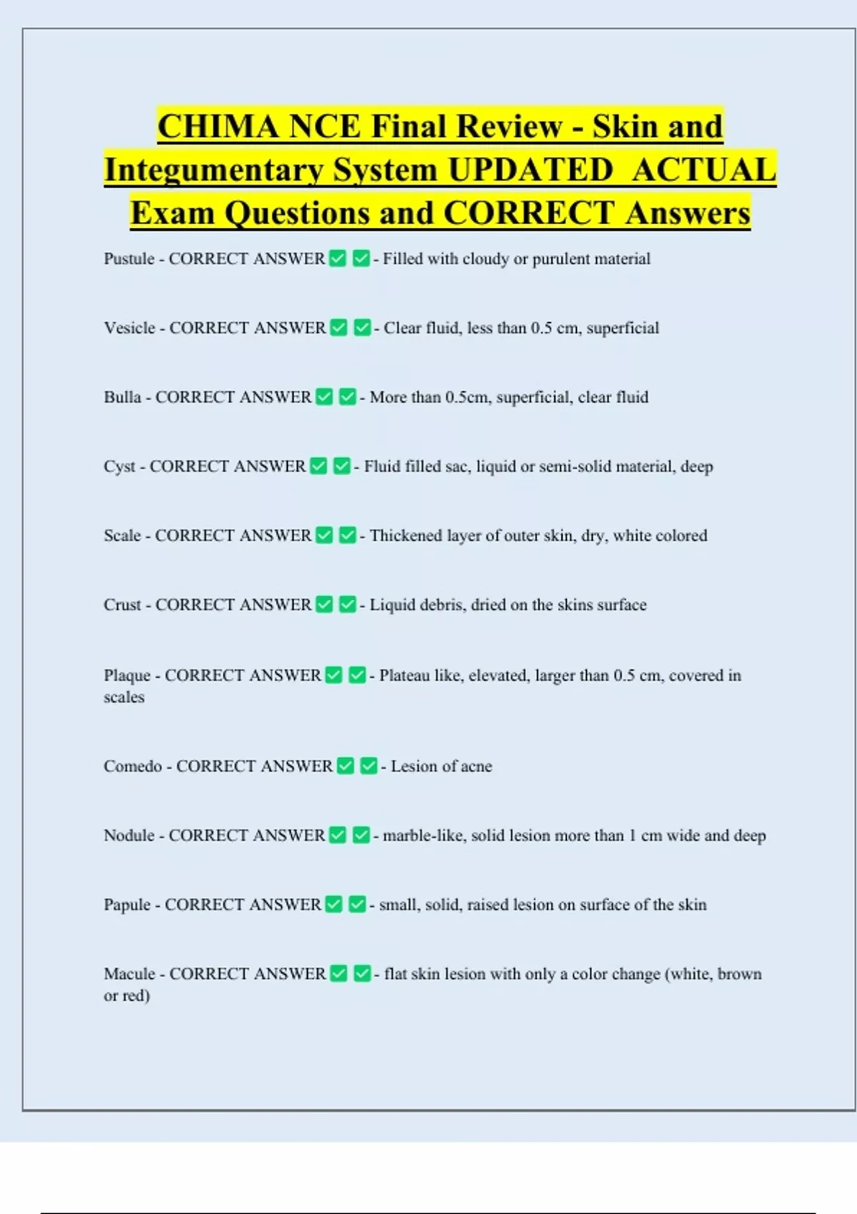 Macule - CORRECT ANSWER - flat skin lesion with only a color change (white, brown