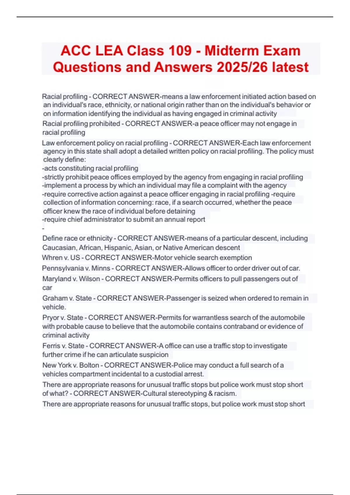 Law enforcement policy on racial profiling - CORRECT ANSWER-Each law enforcement