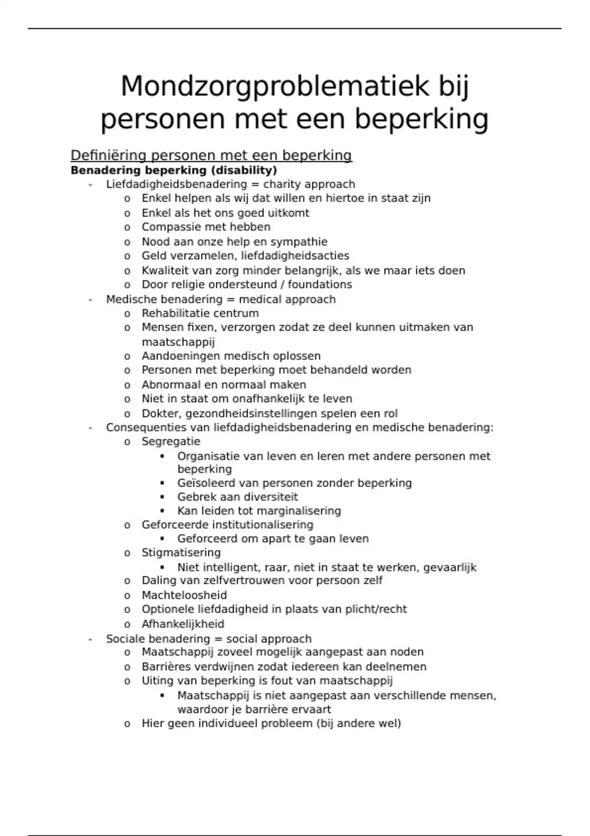 - Consequenties van liefdadigheidsbenadering en medische benadering: