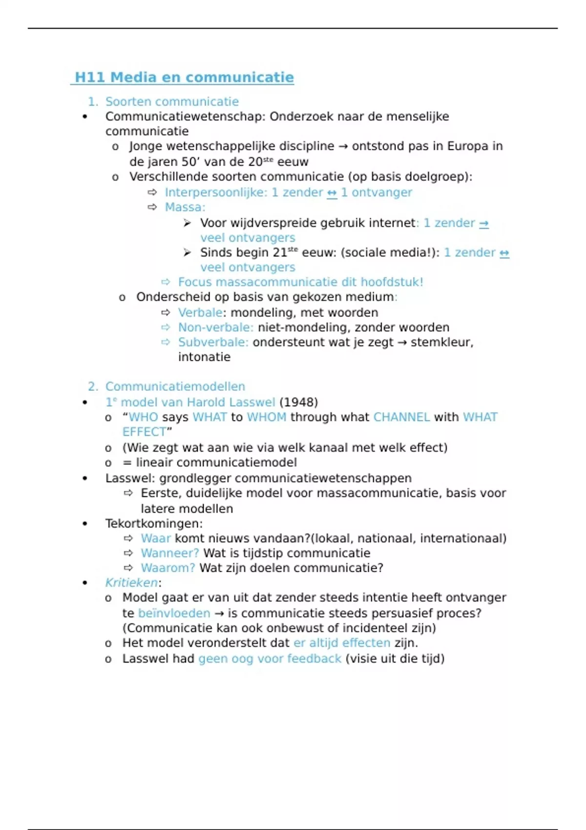 Eerste, duidelijke model voor massacommunicatie, basis voor