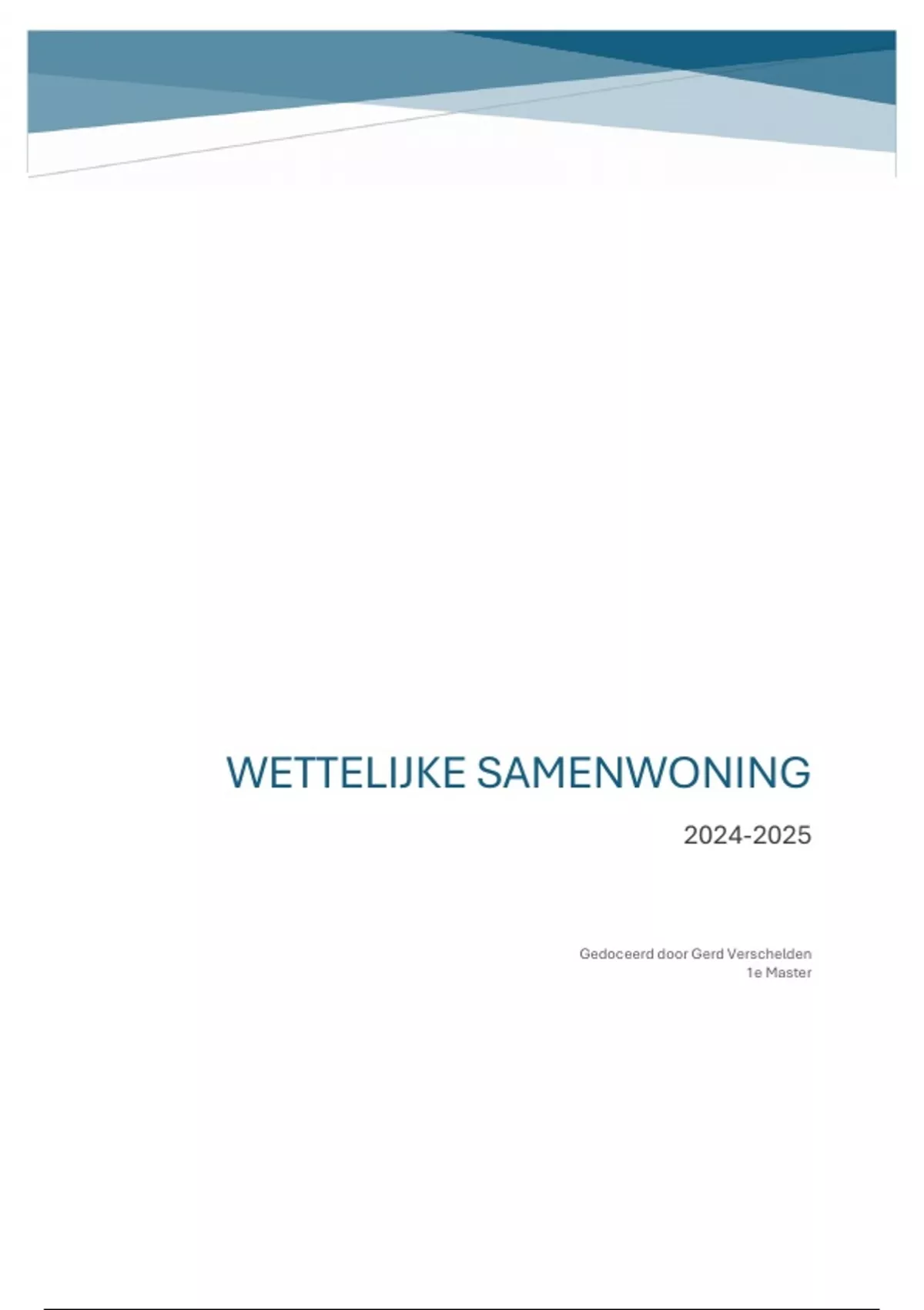 Samenvatting omtrent het onderdeel wettelijke samenwoning. Inhoudsopgave incluis.