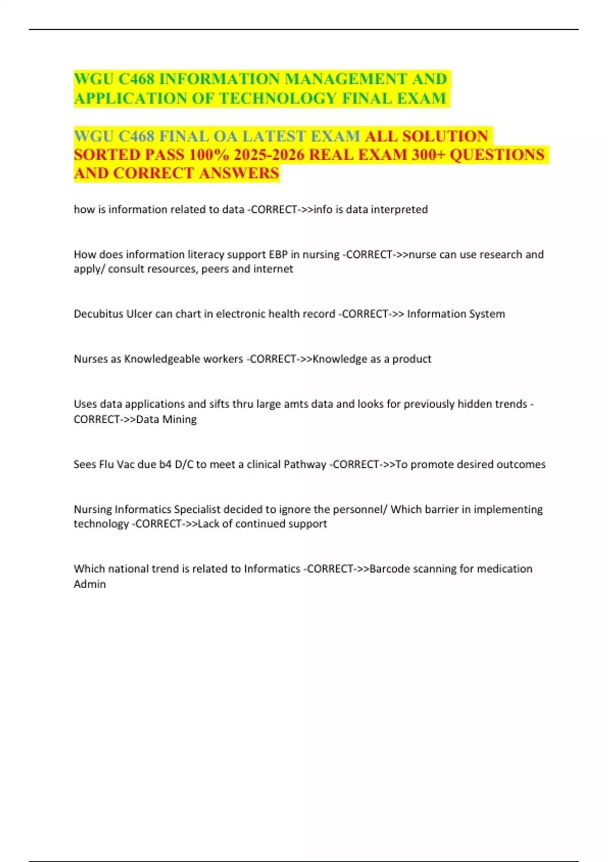 WGU C468 FINAL OA LATEST EXAM ALL SOLUTION