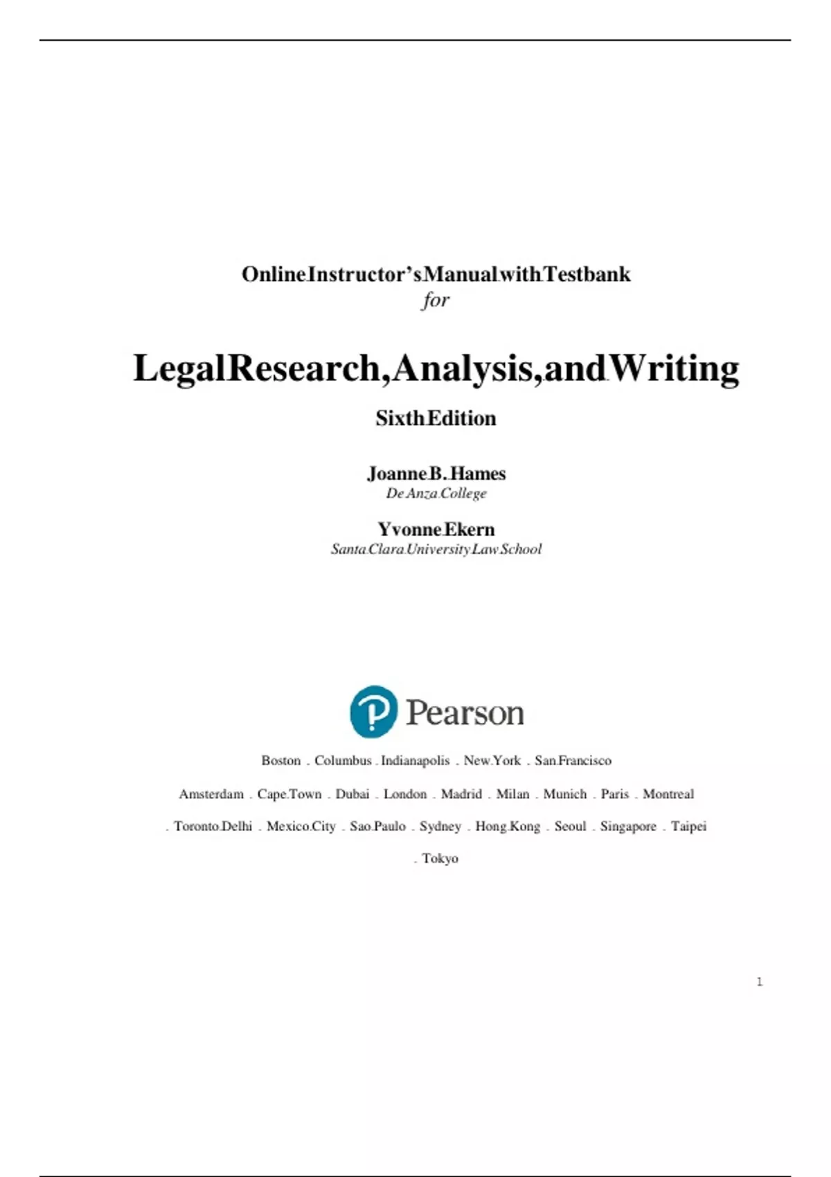 Instructor s manual with testbank for legal research analysis and writing 5th edition by william h putman jdjennifer