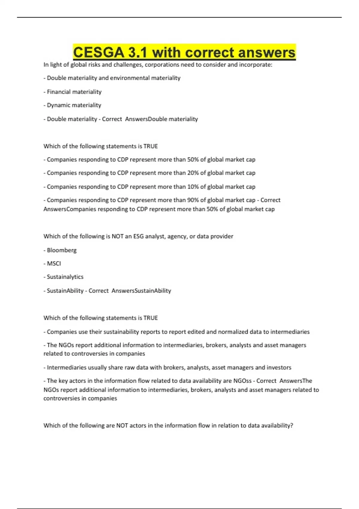 - Only one driver explains the growth of the ESG market: climate change - Correct AnswersDemand for