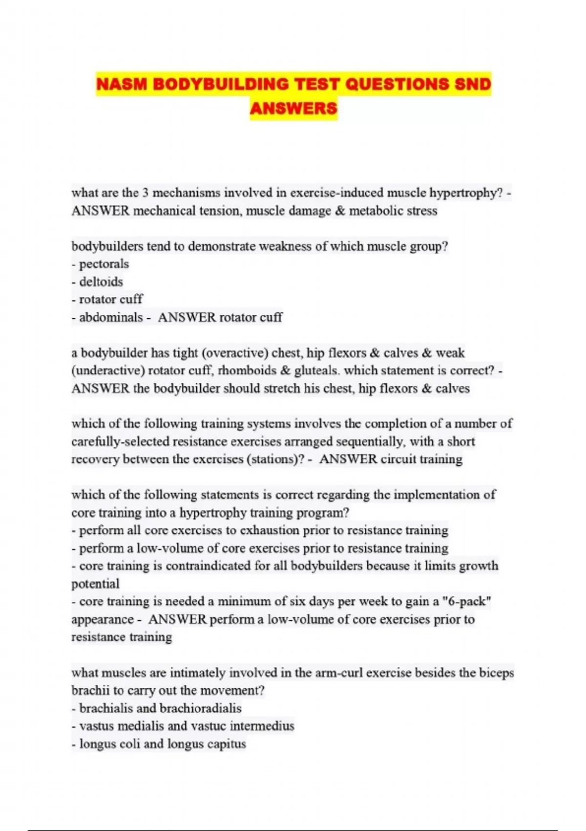 NASM BODYBUILDING TEST QUESTIONS AND ANSWERS