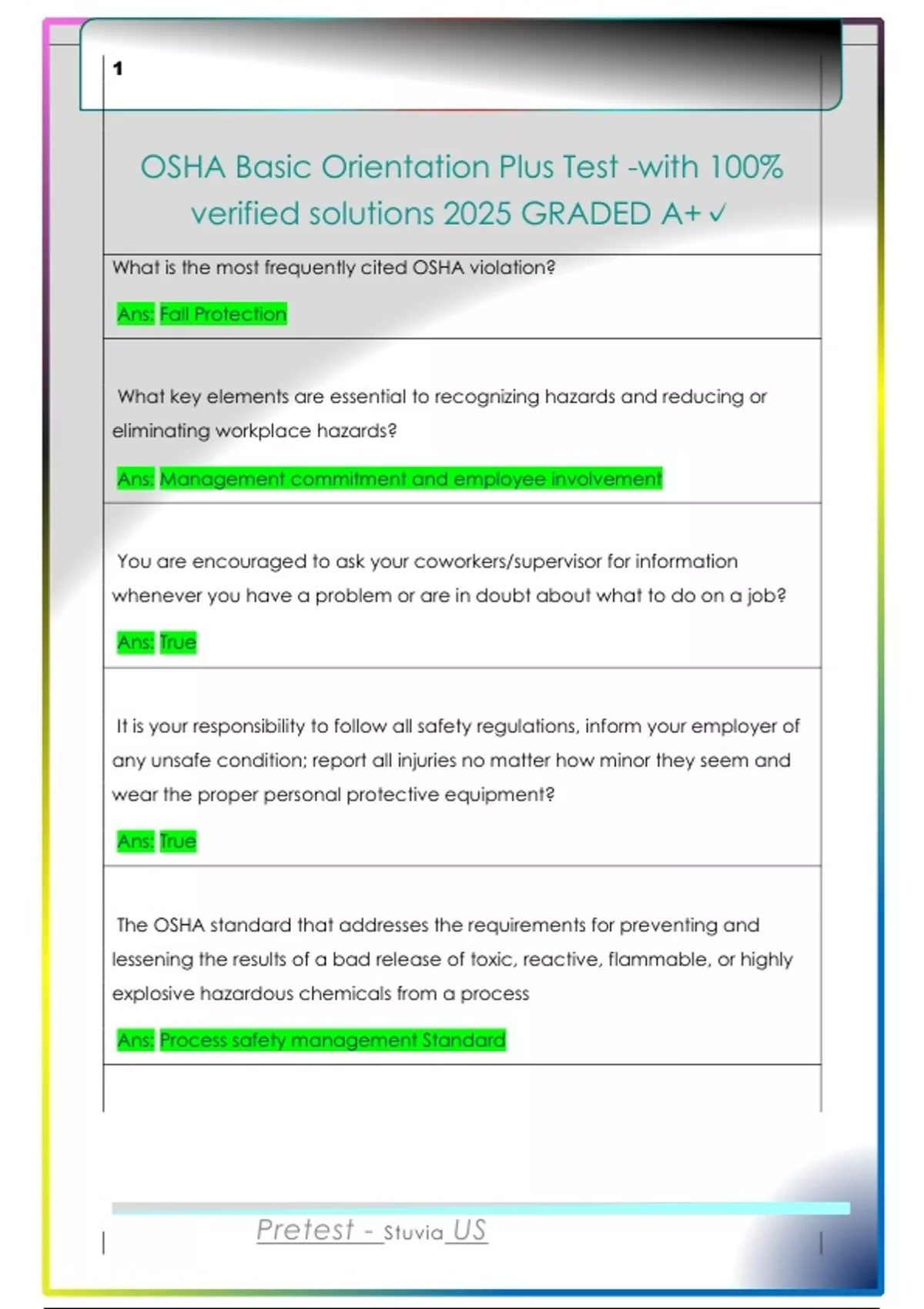 OSHA Basic Orientation Plus Test -with 100%